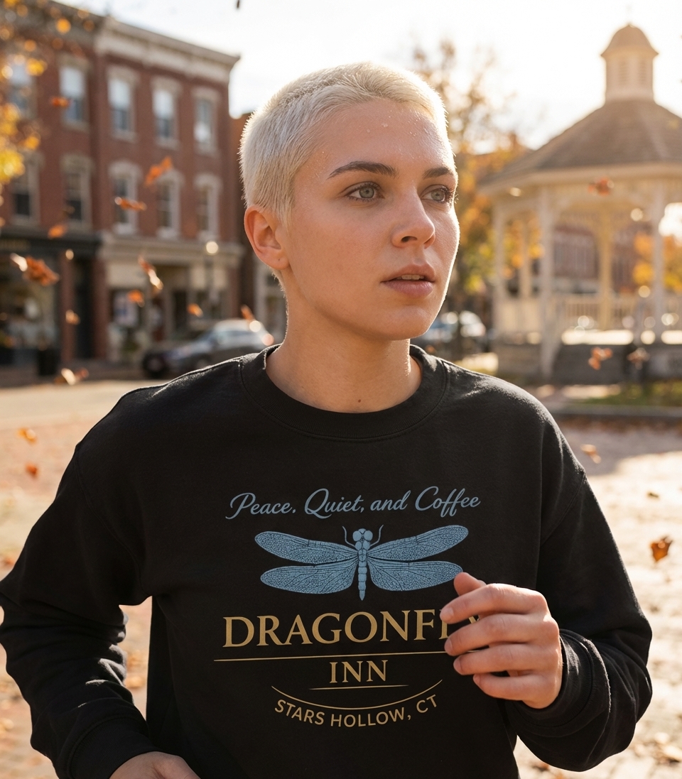 This design showcases the iconic Dragonfly Inn from the beloved series Gilmore Girls. It features a stylized dragonfly, symbolizing the inn's name, surrounded by a calming motto.