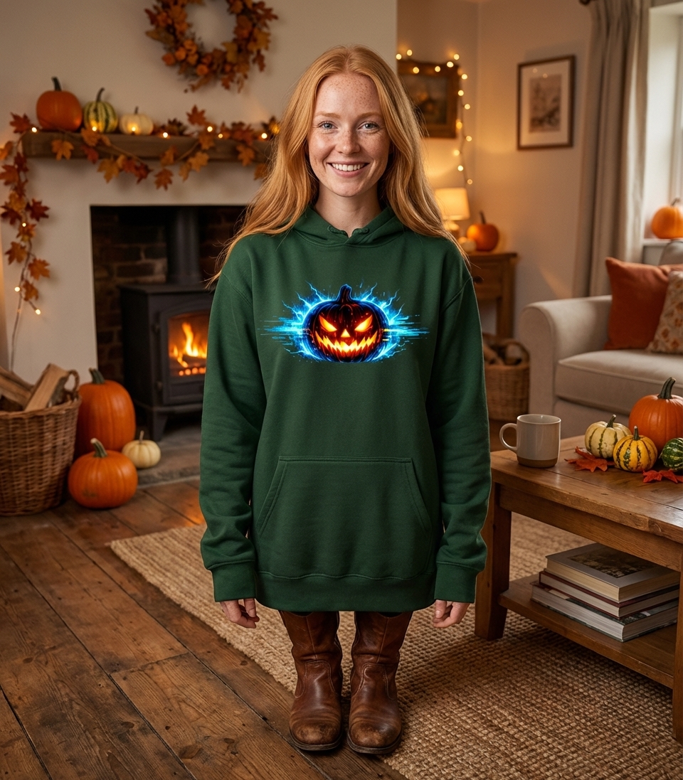 Yes! Check the style selector above to see all available options including hoodies and sweatshirts for the Electric Jack-o'-Lantern graphic.