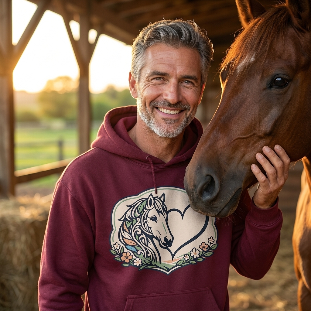 While not featuring a specific phrase, this design conveys a powerful message of love and connection. It represents the profound bond between humans and horses, intertwined with an appreciation for the natural world and its inherent beauty.