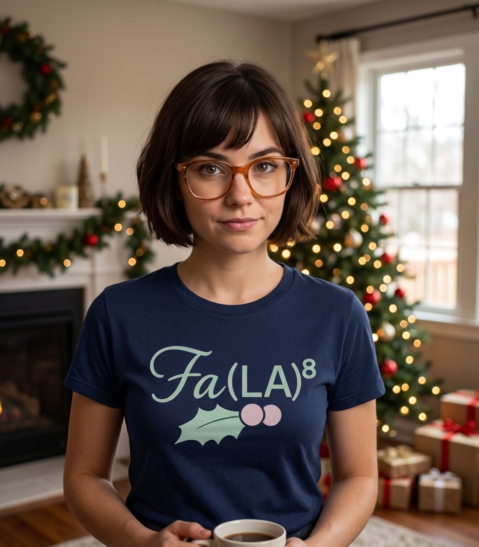The 'Fa(LA)⁸' phrase captures the clever spirit of holiday lovers who enjoy spreading festive cheer with a witty mathematical pun.