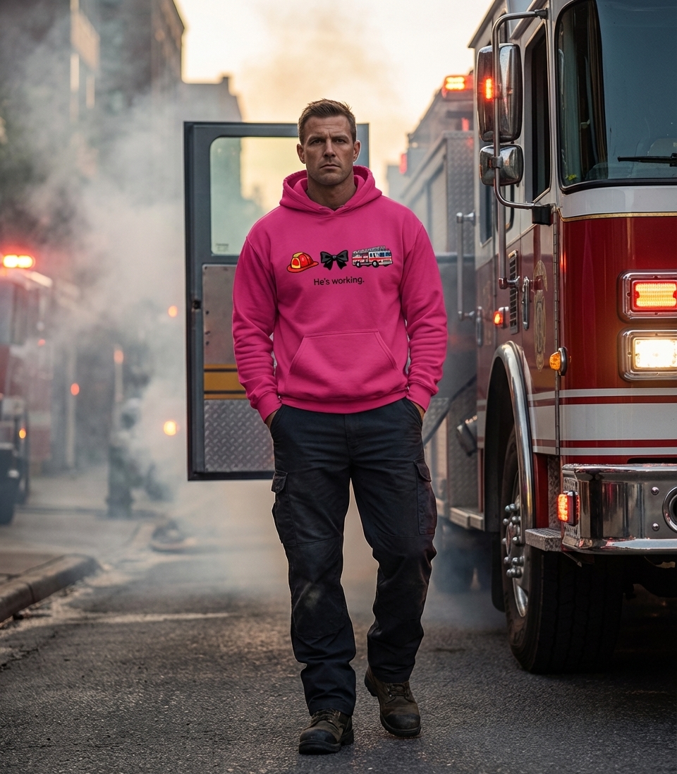 The imagery subtly conveys the phrase 'Firefighter by Day, Gentleman by Night' or similar sentiments. It celebrates individuals who are courageous in their profession and maintain a refined persona in their personal lives.
