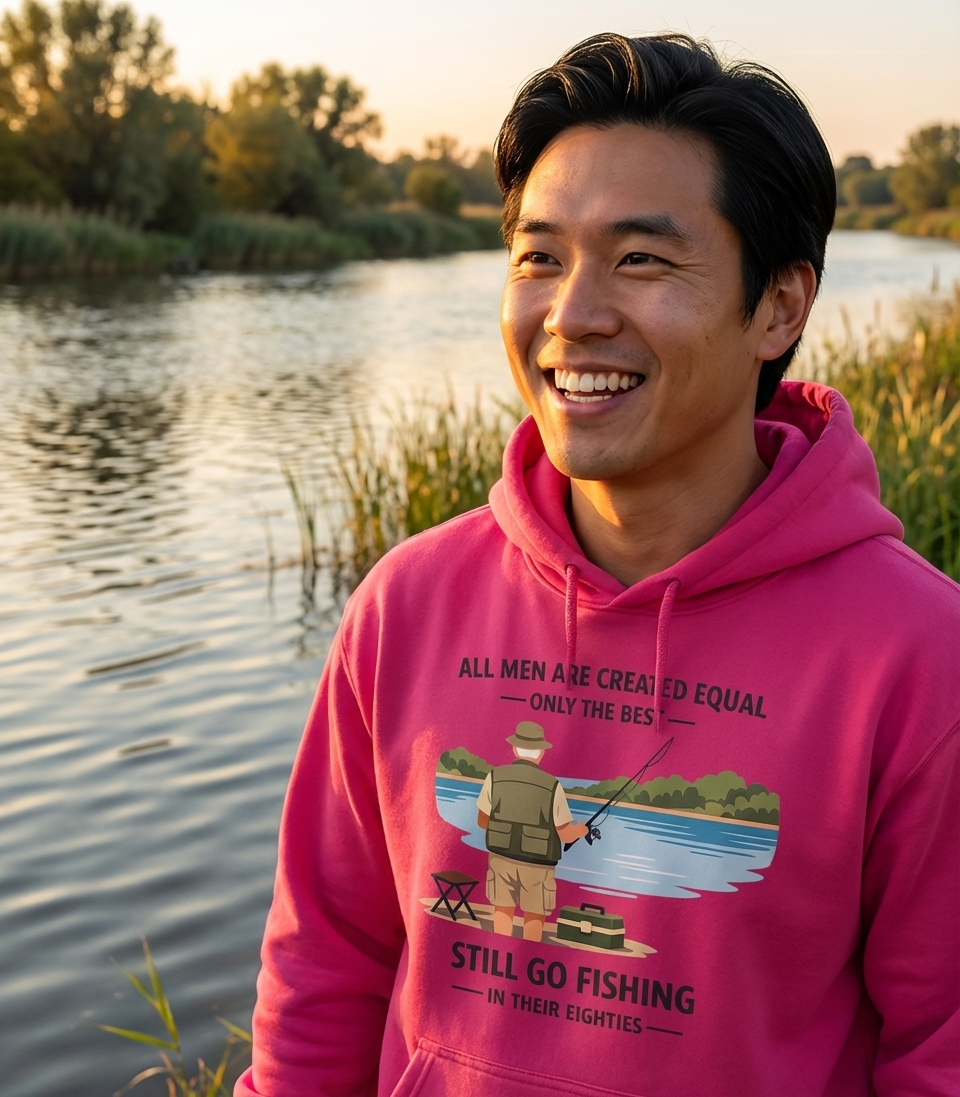 The phrase "All Men Are Created Equal — Only The Best — Still Go Fishing In Their Eighties" is a humorous and proud declaration. It signifies that true dedication and passion for fishing allow enthusiasts to enjoy their beloved hobby for many decades, suggesting a special quality in those who continue.