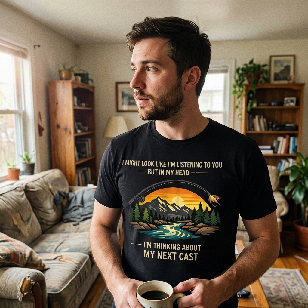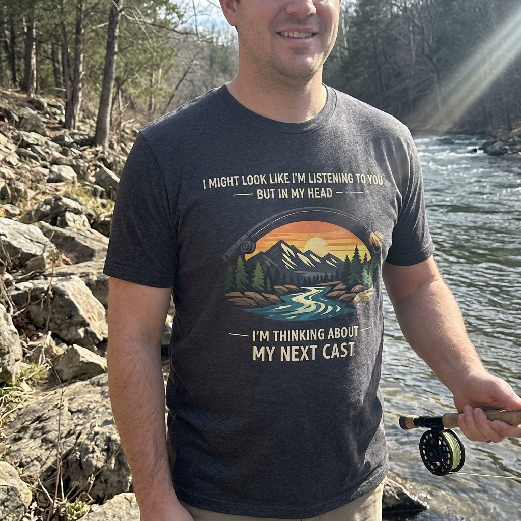 this "my next cast" shirt is actually really nice! the material feels great, and i love how the abstract design is subtle but still totally gets the vibe across. perfect for just chilling or, you know, planning my next fishing trip lol.