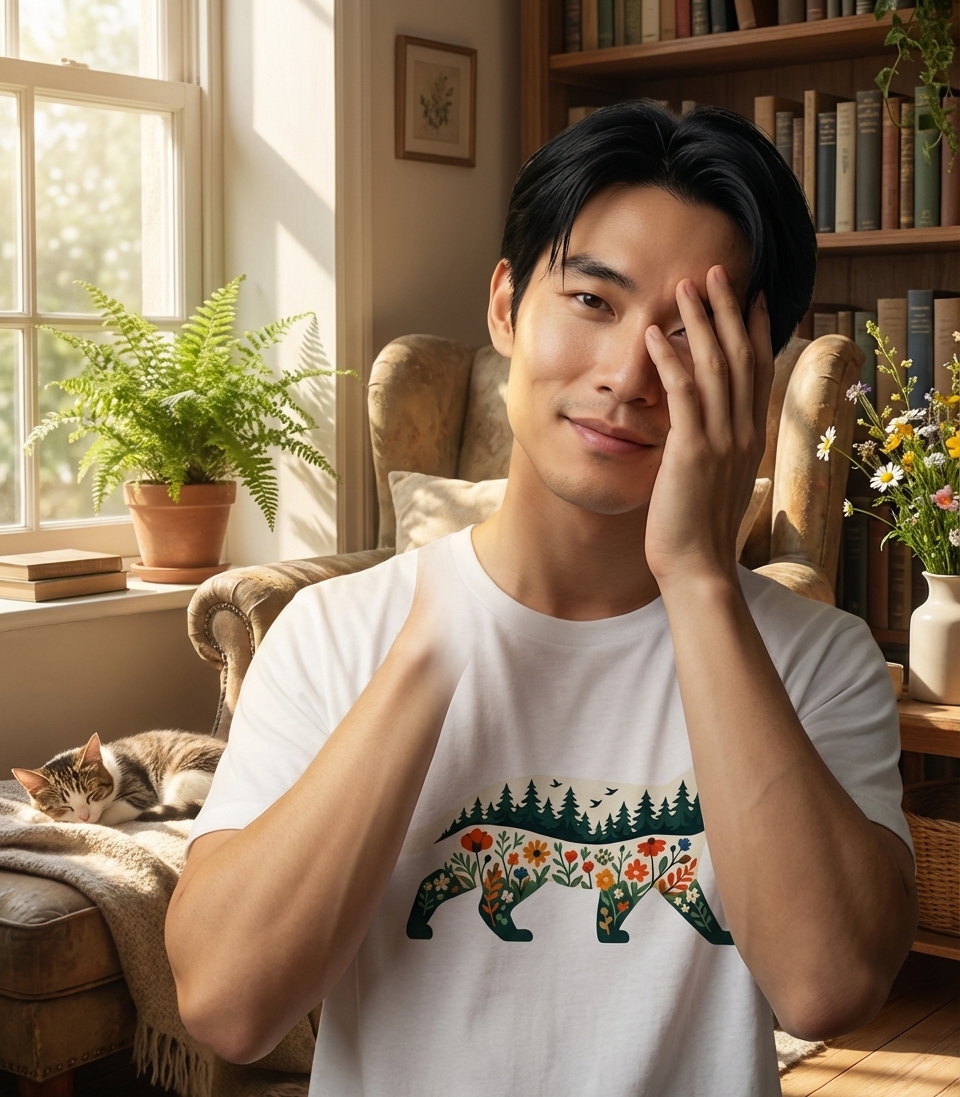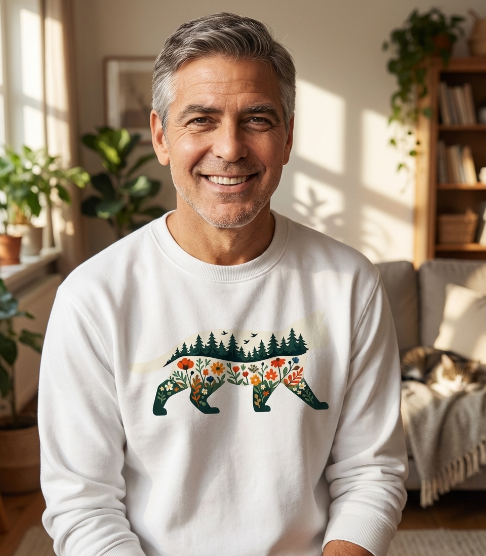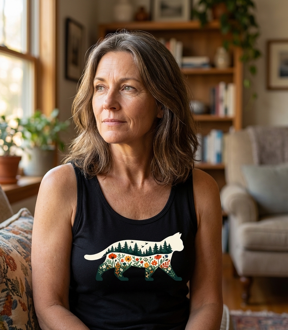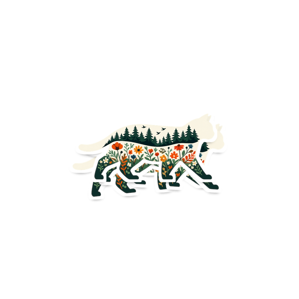 The 'Floral Forest Cat' captures the serene lifestyle of passionate cat and nature lovers who appreciate wilderness, botanical beauty, and peaceful imagery.