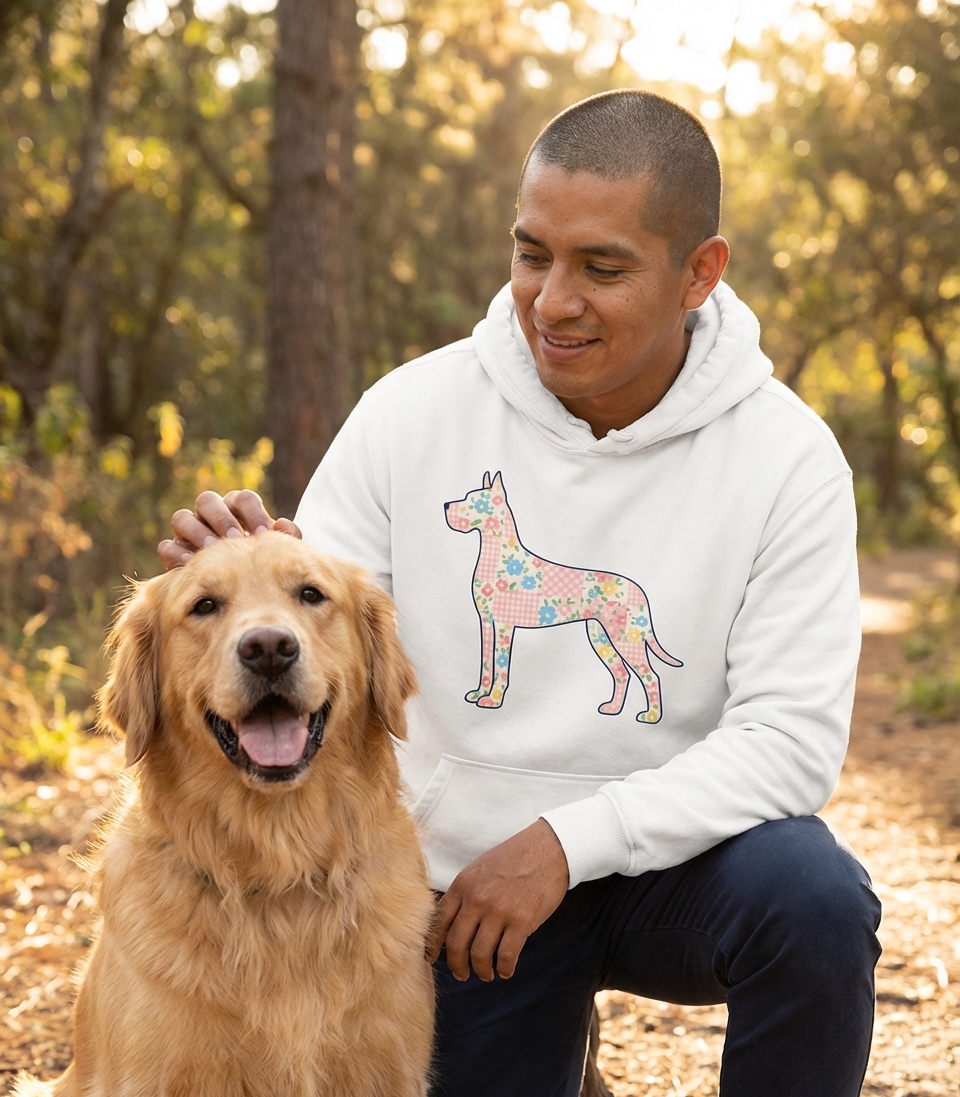 Yes! Check the style selector above to see all available options including hoodies and sweatshirts for the Floral Great Dane graphic.