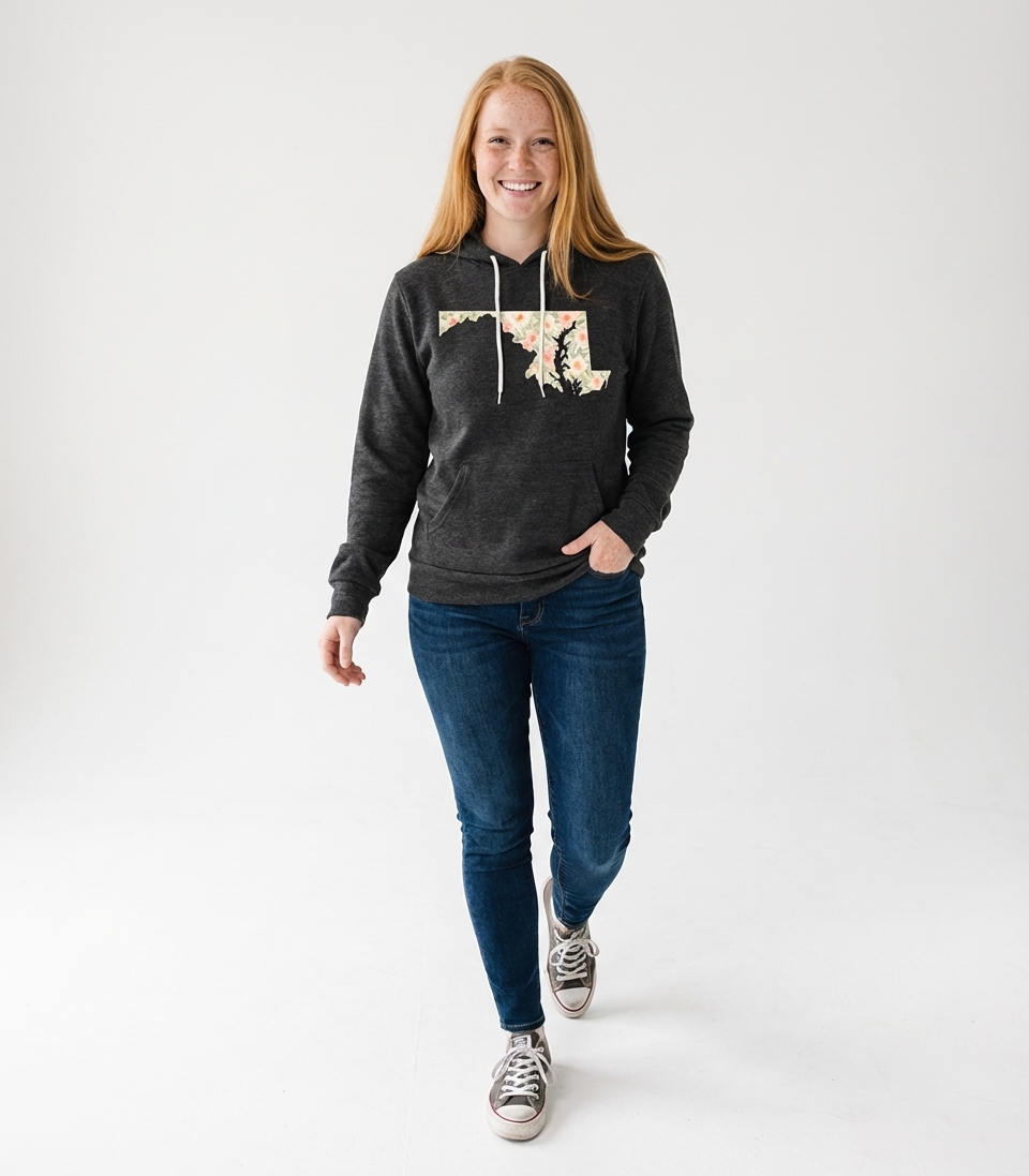Yes! Check the style selector above to see all available options including hoodies and sweatshirts for the Floral Maryland Map graphic.