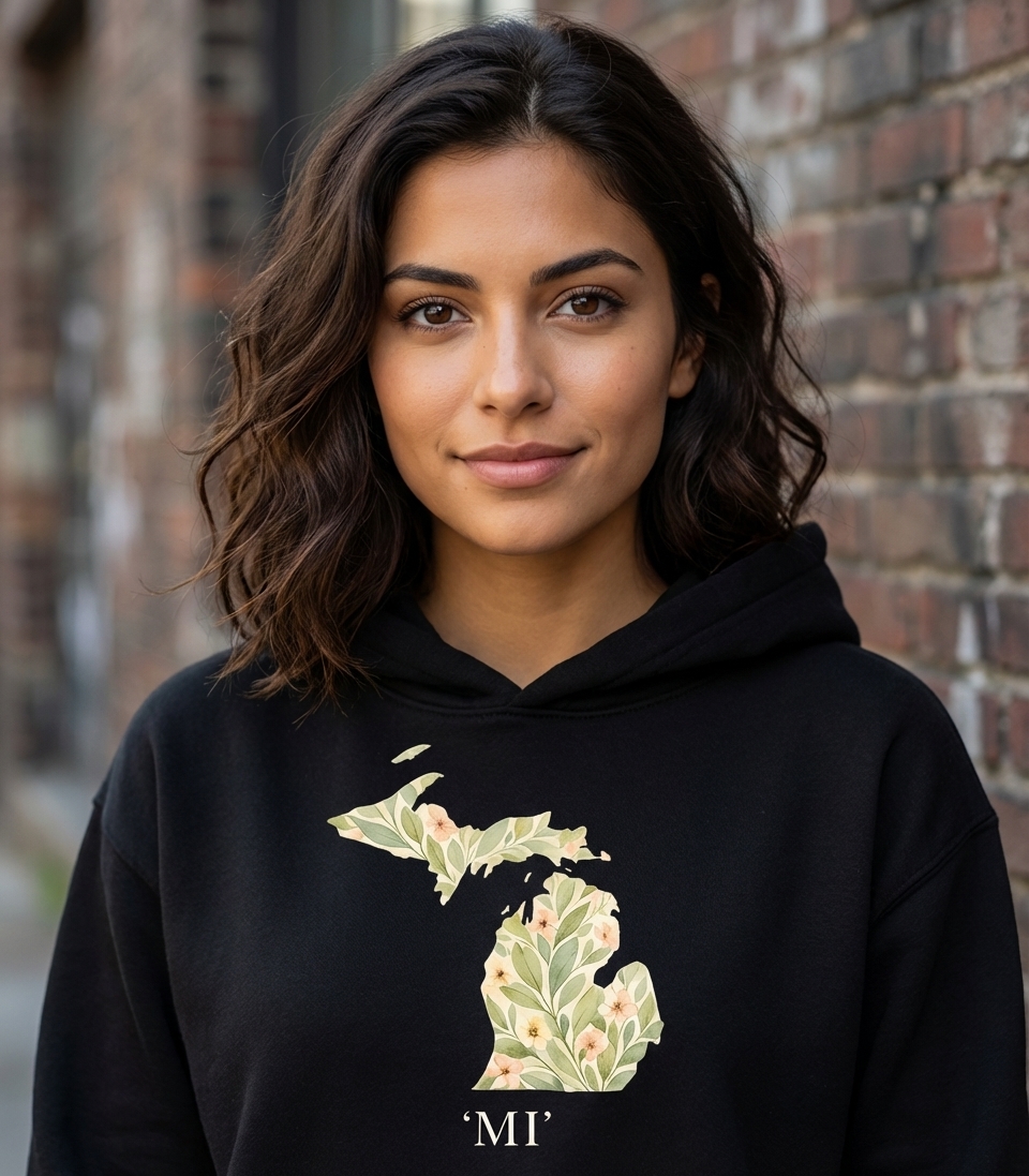 Yes! Check the style selector above to see all available options including hoodies and sweatshirts for the Floral Michigan Map graphic.