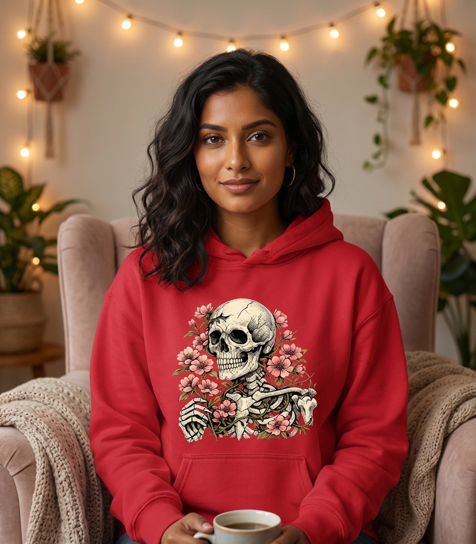 Yes! Check the style selector above to see all available options including hoodies and sweatshirts for the Floral Skeleton Bloom graphic.