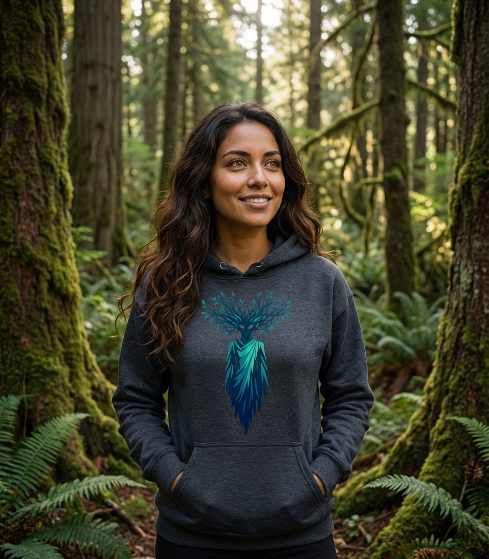The Forest Spirit Guardian design captures the mystical lifestyle of nature enthusiasts who appreciate fantasy lore, find serenity in the woods, and connect with ancient trees.