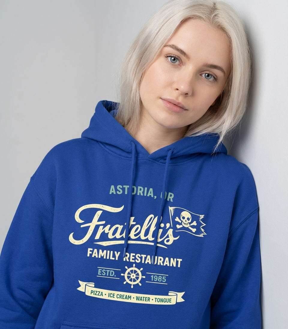 The "Fratelli's Family Restaurant" concept, set in Astoria, OR, and established in 1985, is a direct and humorous cultural reference. It subtly alludes to a well-known adventure film from that era, where a family of outlaws and a quest for treasure defined an unforgettable cinematic experience. The unique menu item "Tongue" further deepens this specific pop culture connection for those in the know.