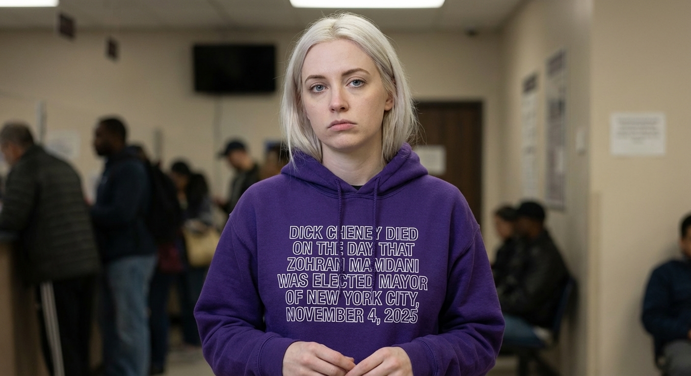 The phrase "Dick Cheney died on the day that Zohran Mamdani was elected Mayor of New York City, November 4, 2025" is a satirical statement. It proposes a hypothetical, provocative future event, blending political figures and urban elections into a single, memorable, and humorous assertion.