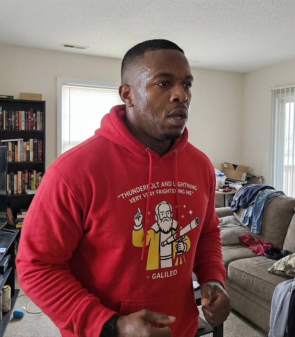 The 'Thunderbolt and Lightning' phrase captures the lifestyle of witty science enthusiasts who love classic rock, historical references, and clever parodies.