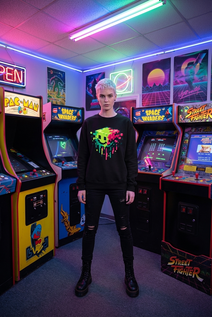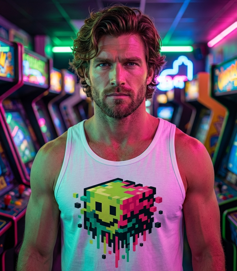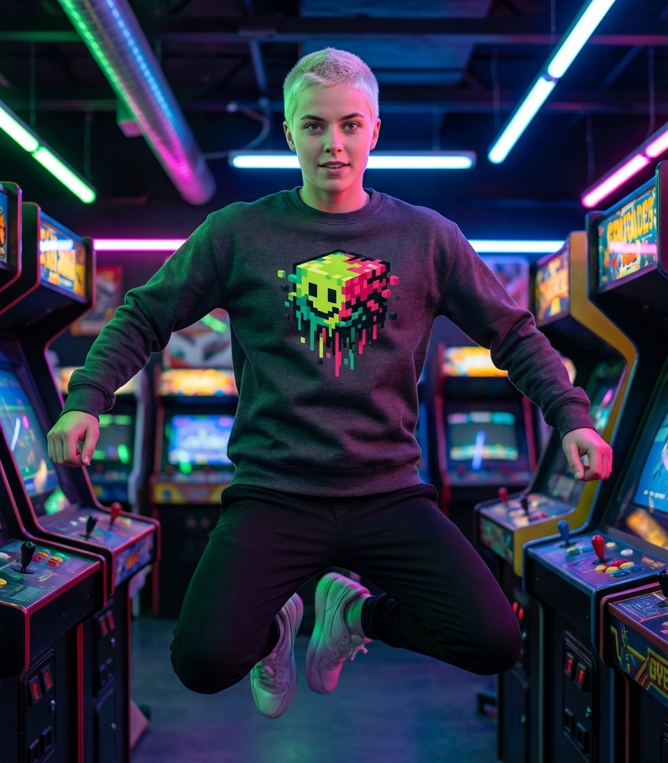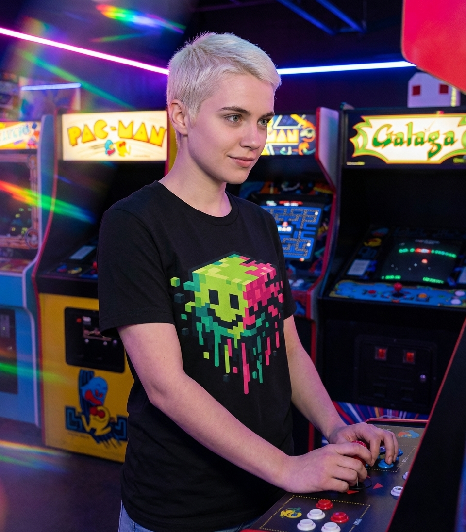 This vibrant pixel art design captures the dynamic energy of digital culture enthusiasts who love retro gaming, bold colors, and unique artistic expressions.
