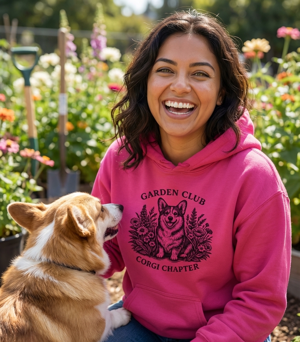Yes! Check the style selector above to see all available options including hoodies and sweatshirts for the Garden Club Corgi graphic.