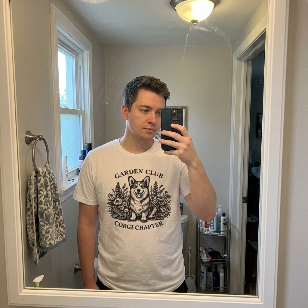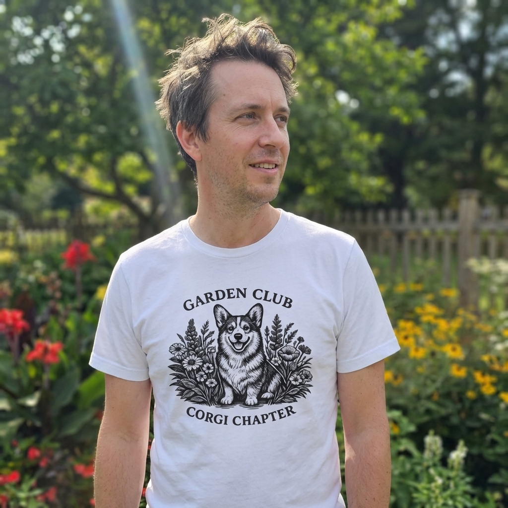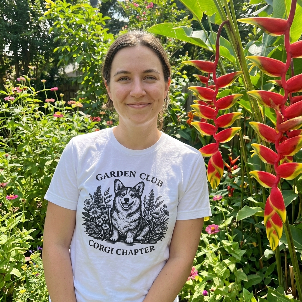 Okay, so this Garden Club Corgi tee is seriously adorable – the abstract vibe really works for it, way cuter than I expected. It's soft and fits great, definitely a new favorite.