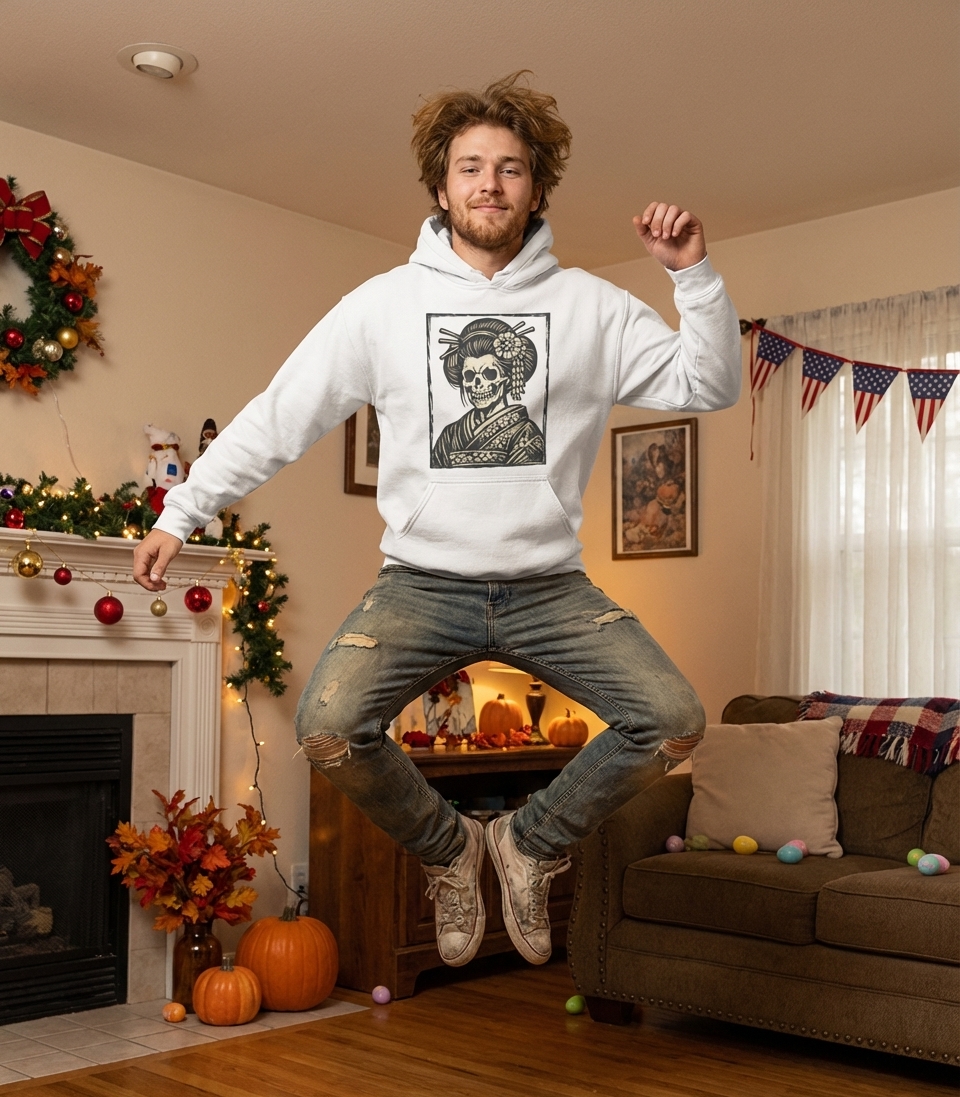 Yes! Check the style selector above to see all available options including hoodies and sweatshirts for the Geisha Skull Kimono graphic.
