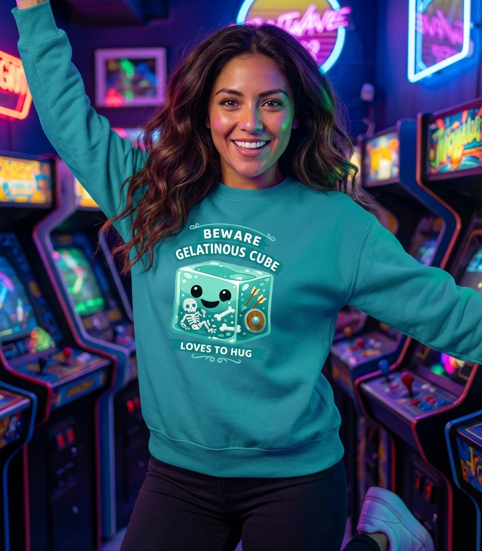 Yes! Check the style selector above to see all available options including hoodies and sweatshirts for the Gelatinous Cube Hugs graphic.