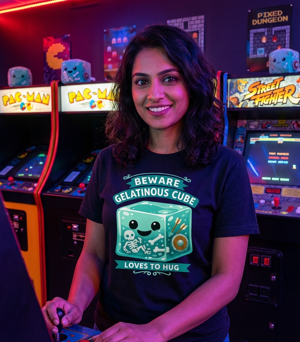 This design captures the playful spirit of Dungeons & Dragons enthusiasts who love encountering classic monsters with a humorous twist.
