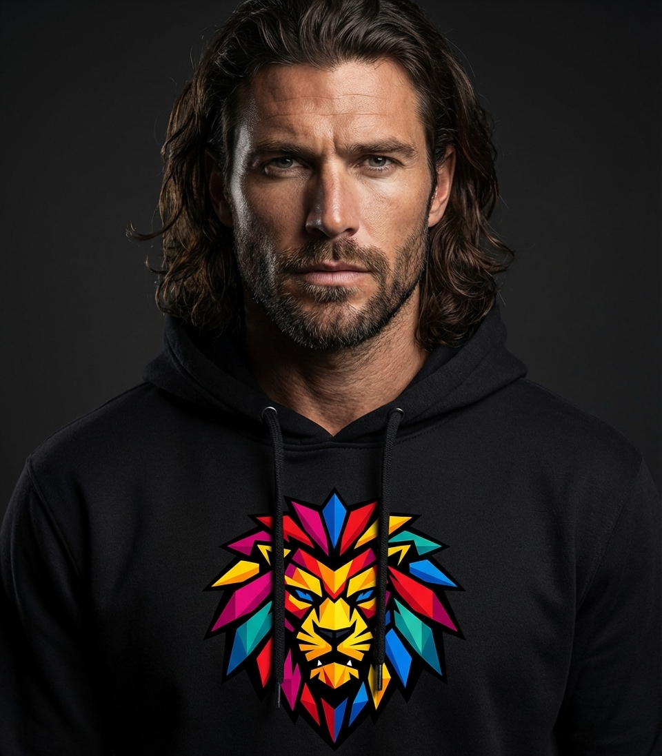 Yes! Check the style selector above to see all available options including hoodies and sweatshirts for the Vibrant Geometric Lion graphic.