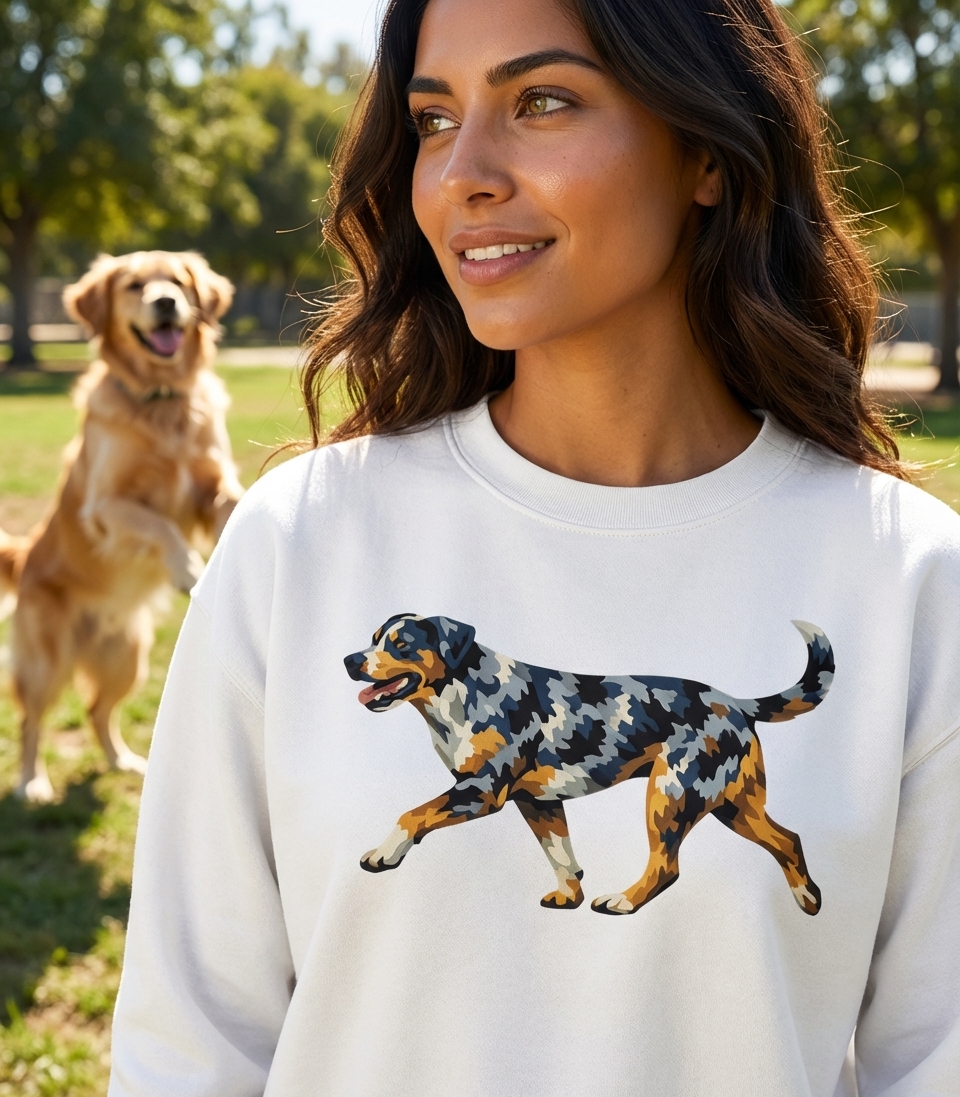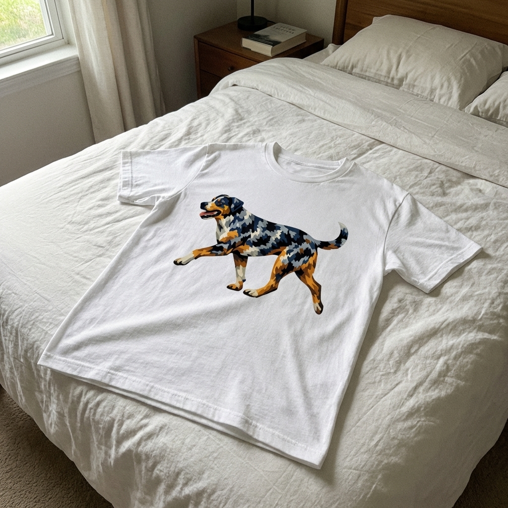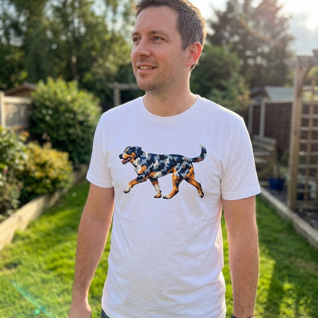 i just received my geometric dog tee and it's perfect! the print looks really sharp and the fabric is actually super comfy, definitely not scratchy or cheap feeling. love how it's abstract but still clearly a dog, exactly what i wanted.