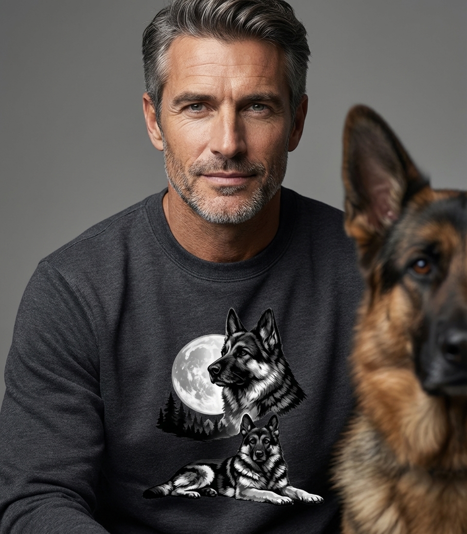 Yes! Check the style selector above to see all available options including hoodies and sweatshirts for the German Shepherd Moon graphic.