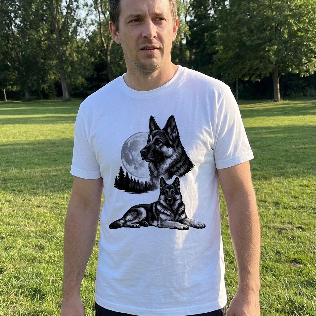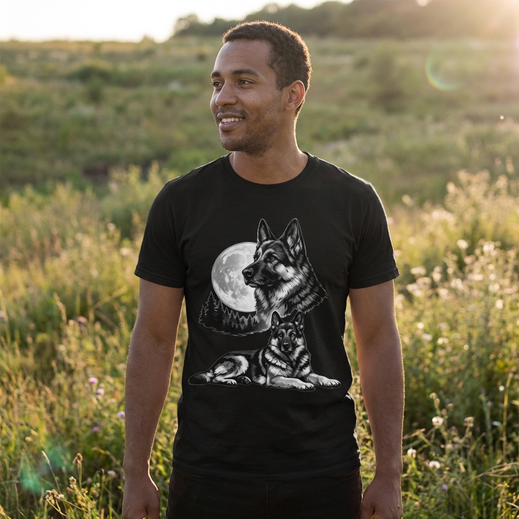 just got my german shepherd moon tee and i love it! the print is even cooler in person, really unique and not cheesy at all. comfy material too, definitely a new fav.