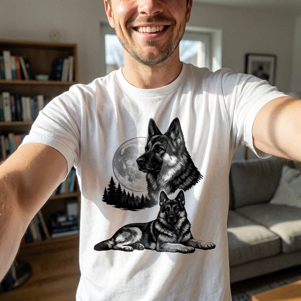 got my german shepherd moon shirt today and it's legit awesome. the material is really soft and that abstract design? chef's kiss. already my new favorite casual tee.
