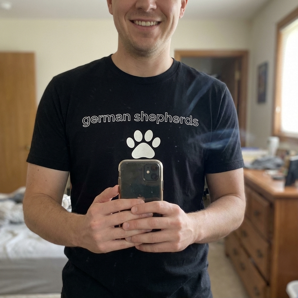 Okay, just got this t-shirt and it's seriously soft, way nicer than I expected. The abstract paw print is perfect – stylish but subtle, exactly what I wanted to represent my GSD without being cheesy. love it!