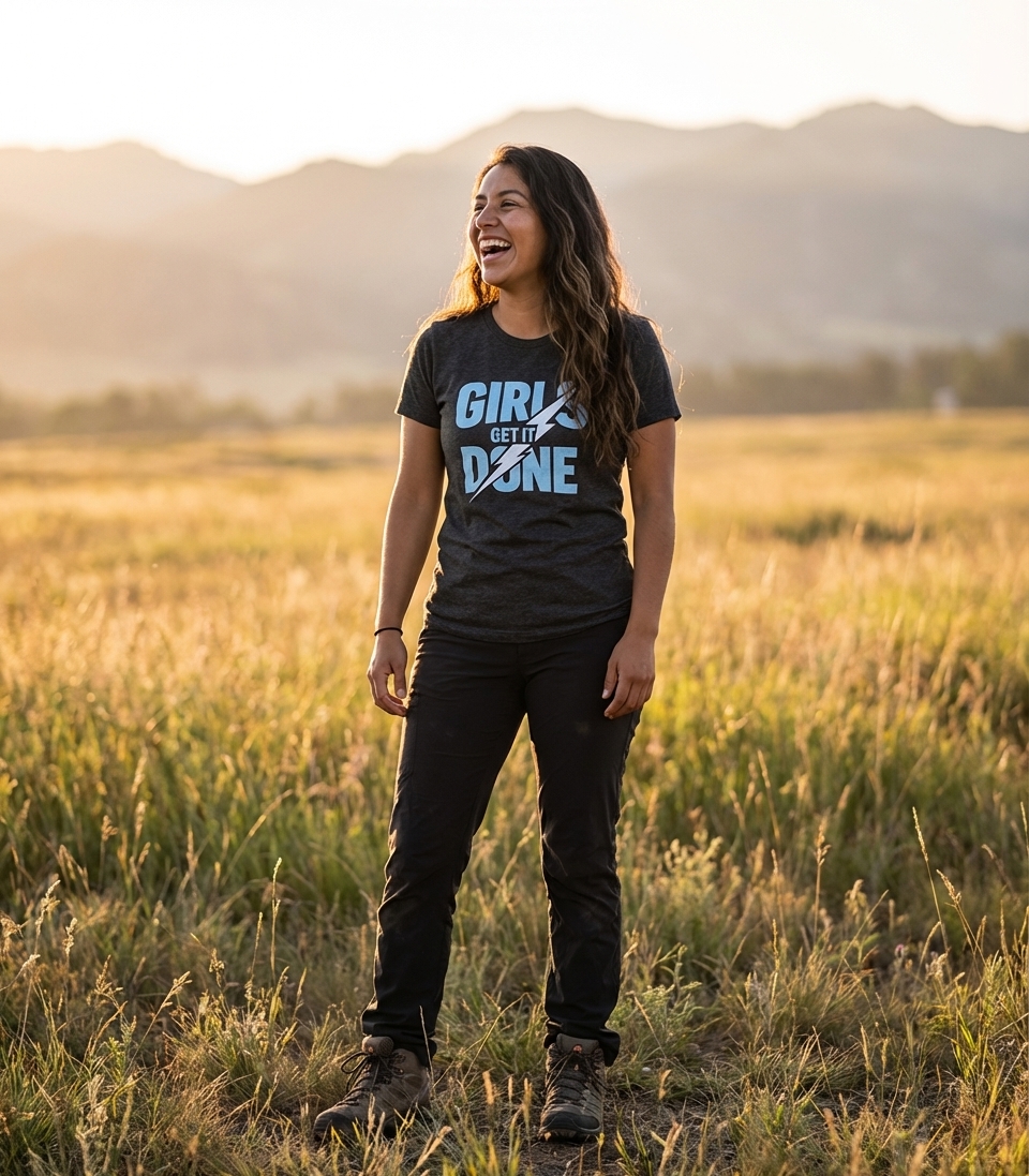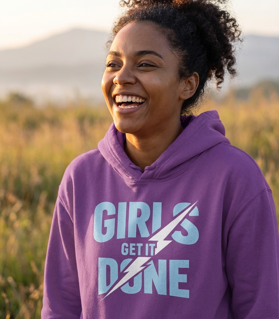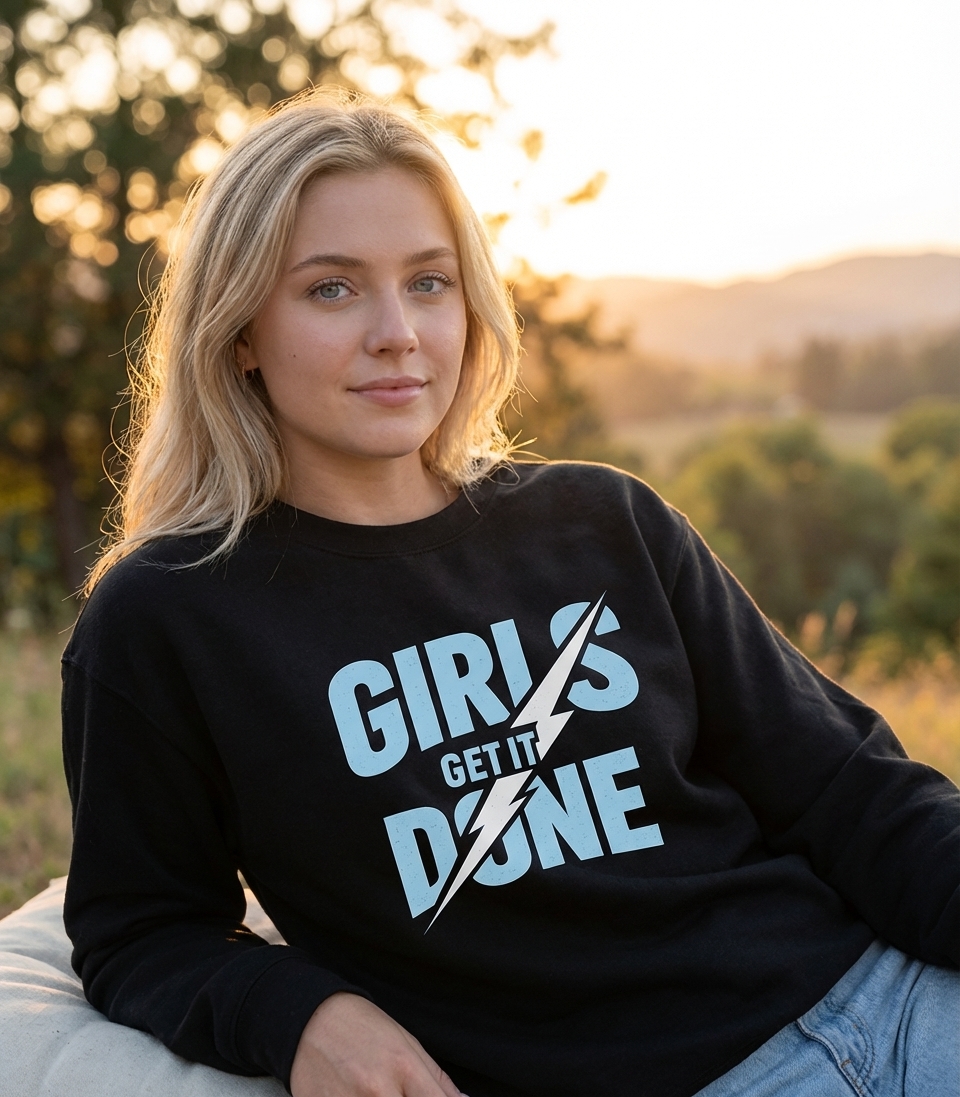 The 'Girls Get It Done' phrase captures the lifestyle of empowered women who tackle challenges, achieve goals, and make things happen.