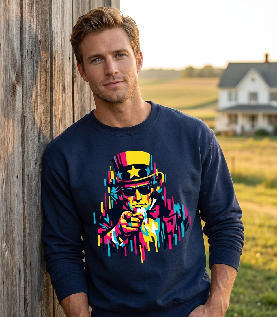 The image of Uncle Sam pointing, famously asking "I Want YOU for U.S. Army," is one of the most recognized calls to action in American history. This design leverages that iconic gesture to represent national unity, civic duty, and the enduring spirit of American resolve. It's a timeless emblem of national pride and engagement.