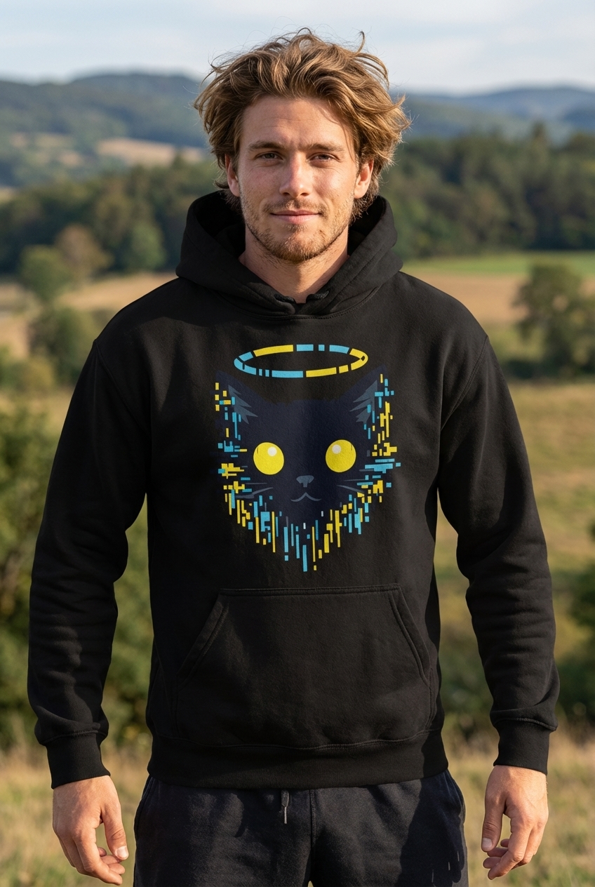Yes! Check the style selector above to see all available options including hoodies and sweatshirts for the Glitch Halo Cat graphic.