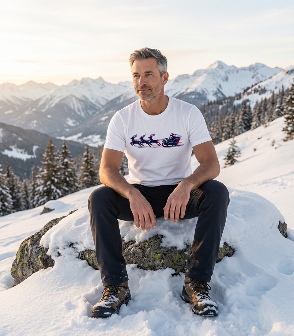 The design reimagines the iconic journey of Santa Claus through a digital lens. It embodies a sense of speed and modernity, suggesting a holiday season infused with retro-futuristic charm. This visual approach offers a fresh perspective on timeless Christmas magic.