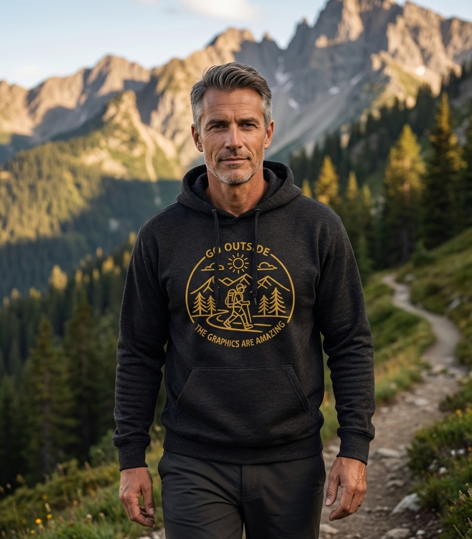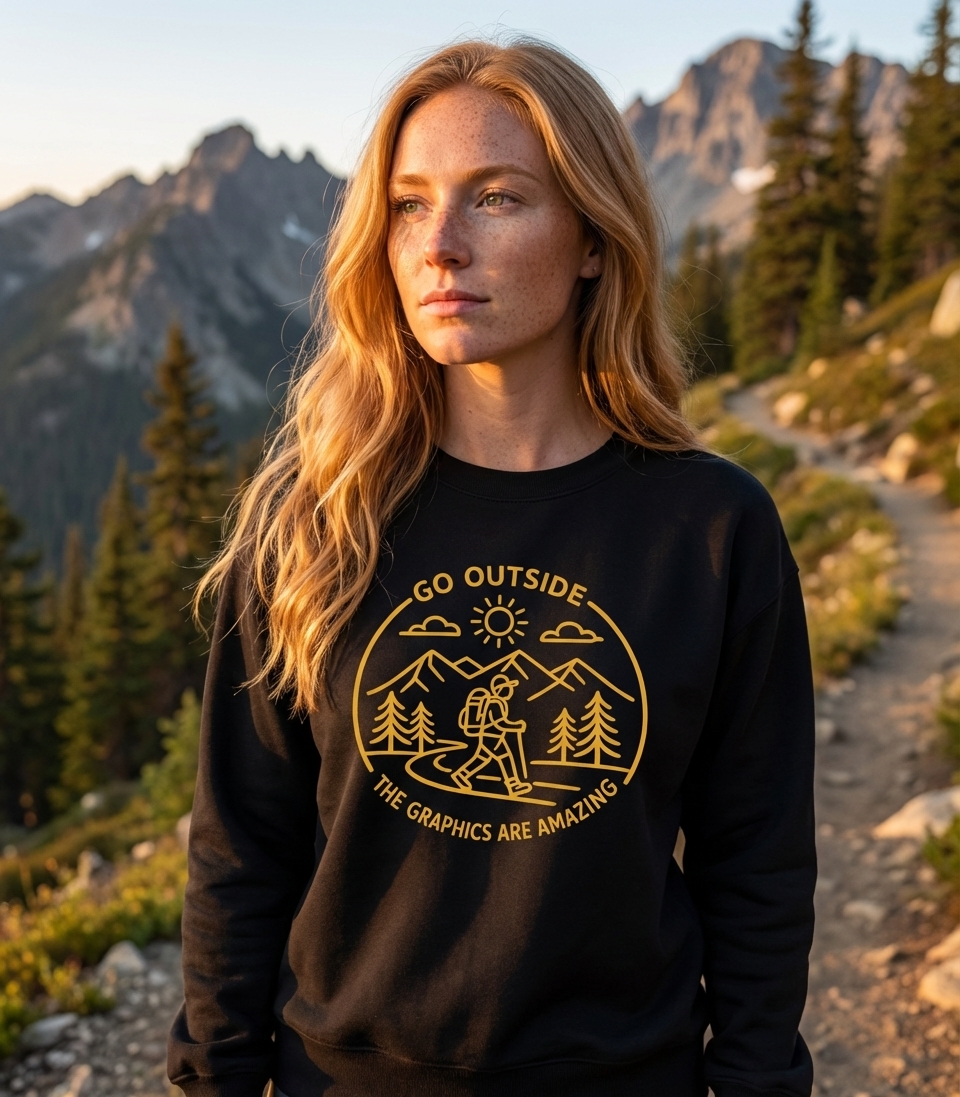 The "Go Outside The Graphics Are Amazing" phrase captures the lifestyle of passionate hikers who spend their days exploring trails, enjoying scenic views, and appreciating natural beauty.