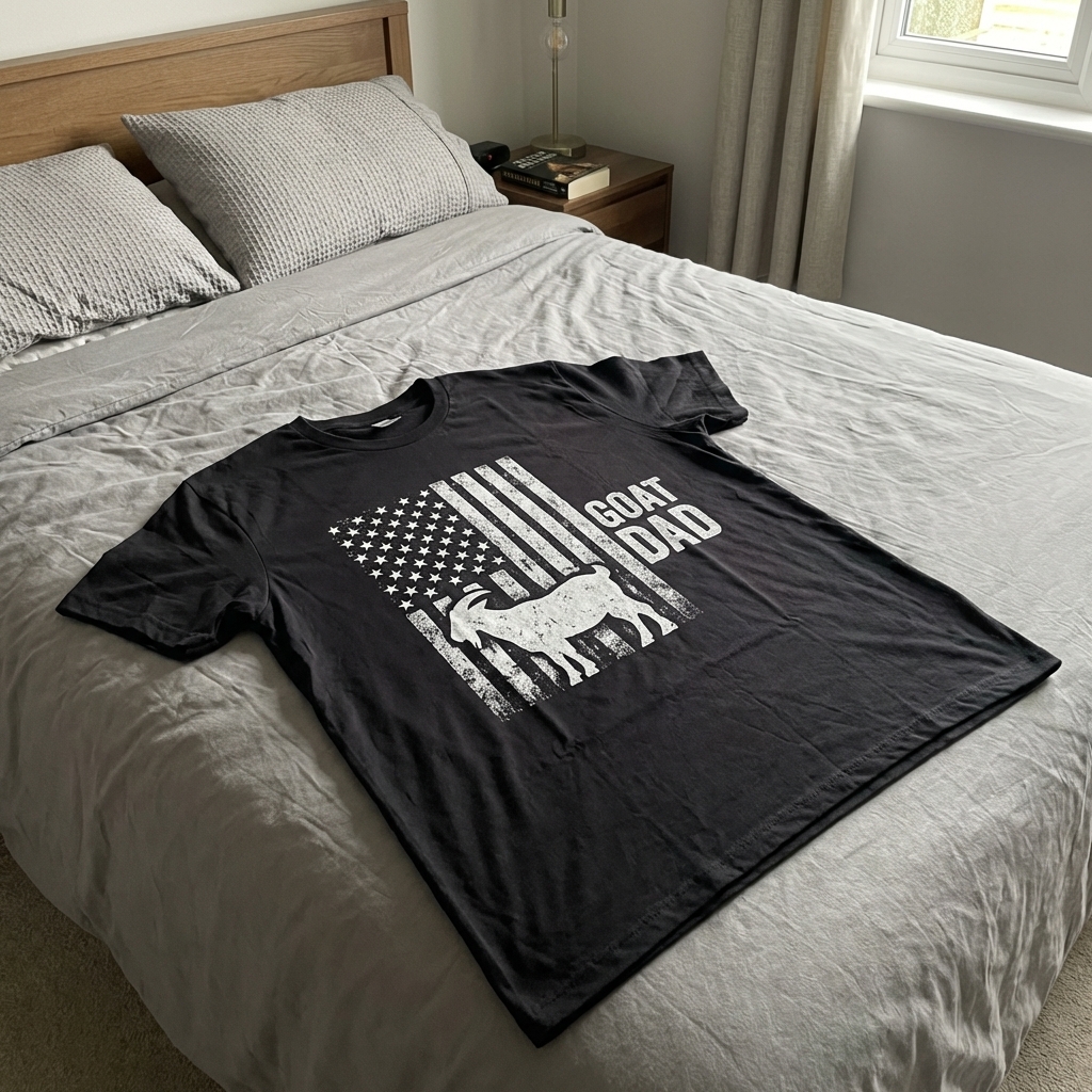 Ok, this 'GOAT Dad' shirt? Love it. The abstract flag design is super fresh and actually looks way better in person than online. Seriously comfy too, might have to grab another.