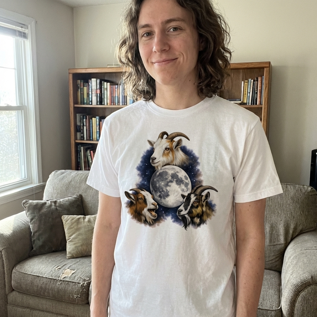 Okay, wasn't sure what to expect with the 'goats and moon' thing, but this tee is actually awesome. The abstract vibe really comes through, and it's surprisingly soft. might just live in this one, lol.