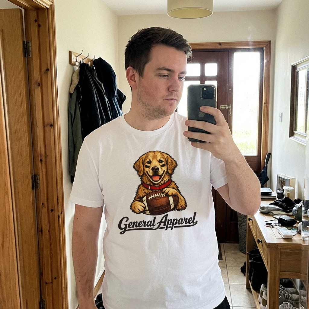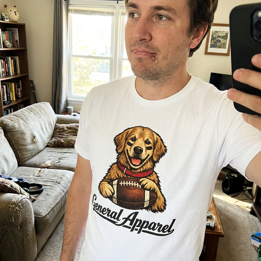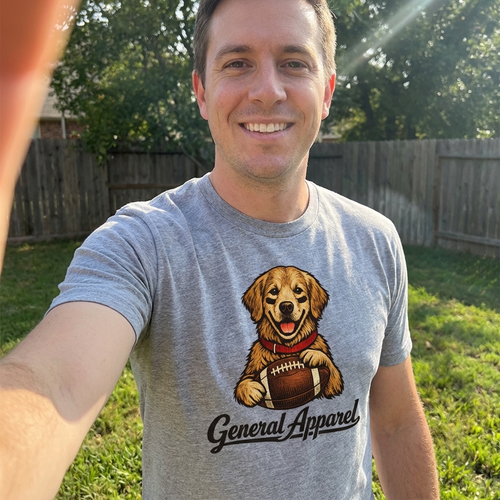 Okay, so this golden retriever football shirt is actually so comfy, like really good quality for the price. The abstract design is super cute and not overly cartoonish, which I totally dig. Definitely a new favorite for casual days.
