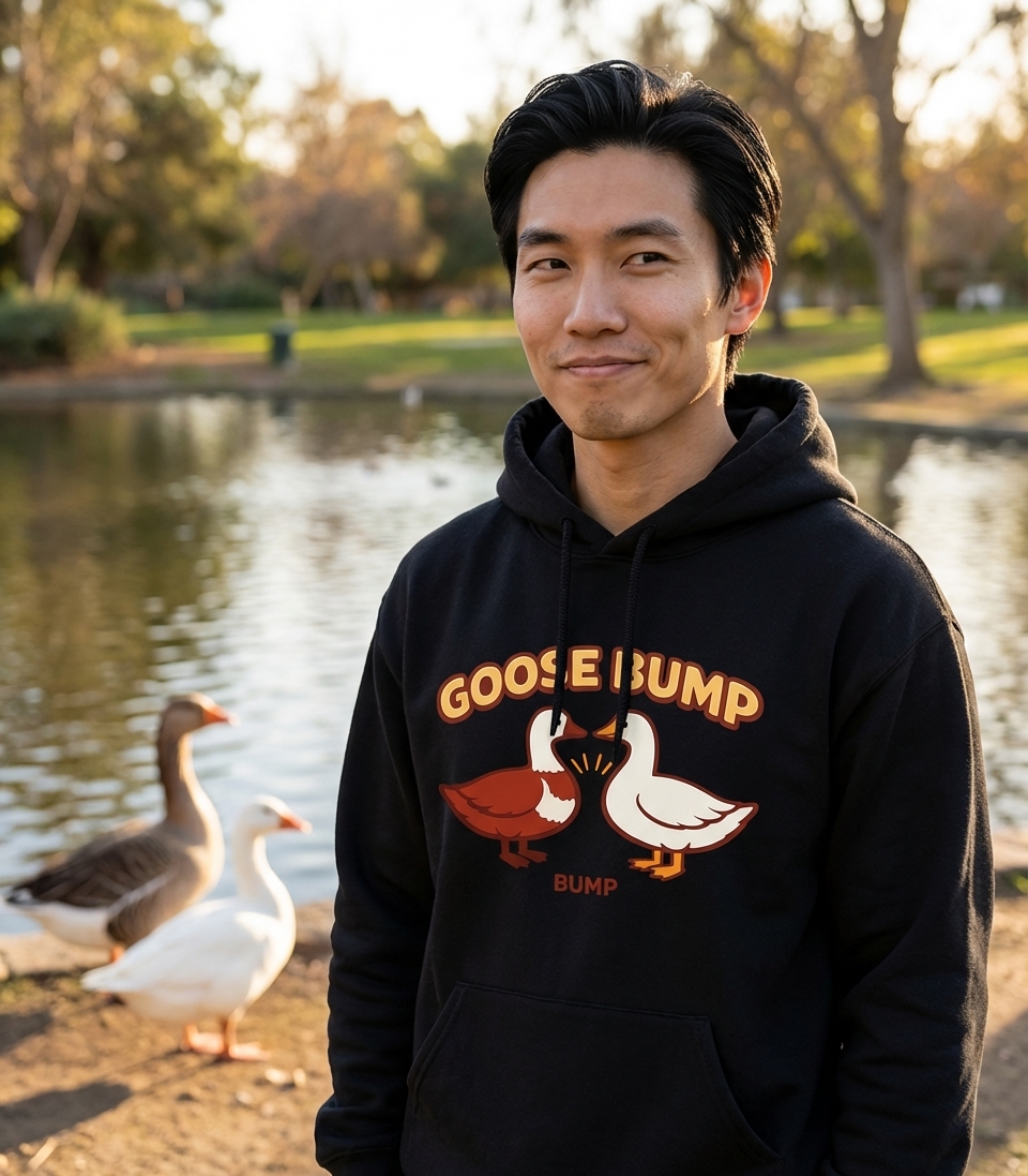 The 'Goose Bump' phrase playfully captures the lighthearted humor of ducks creating a literal 'goose bump', appealing to fans of wordplay and cute animal designs.