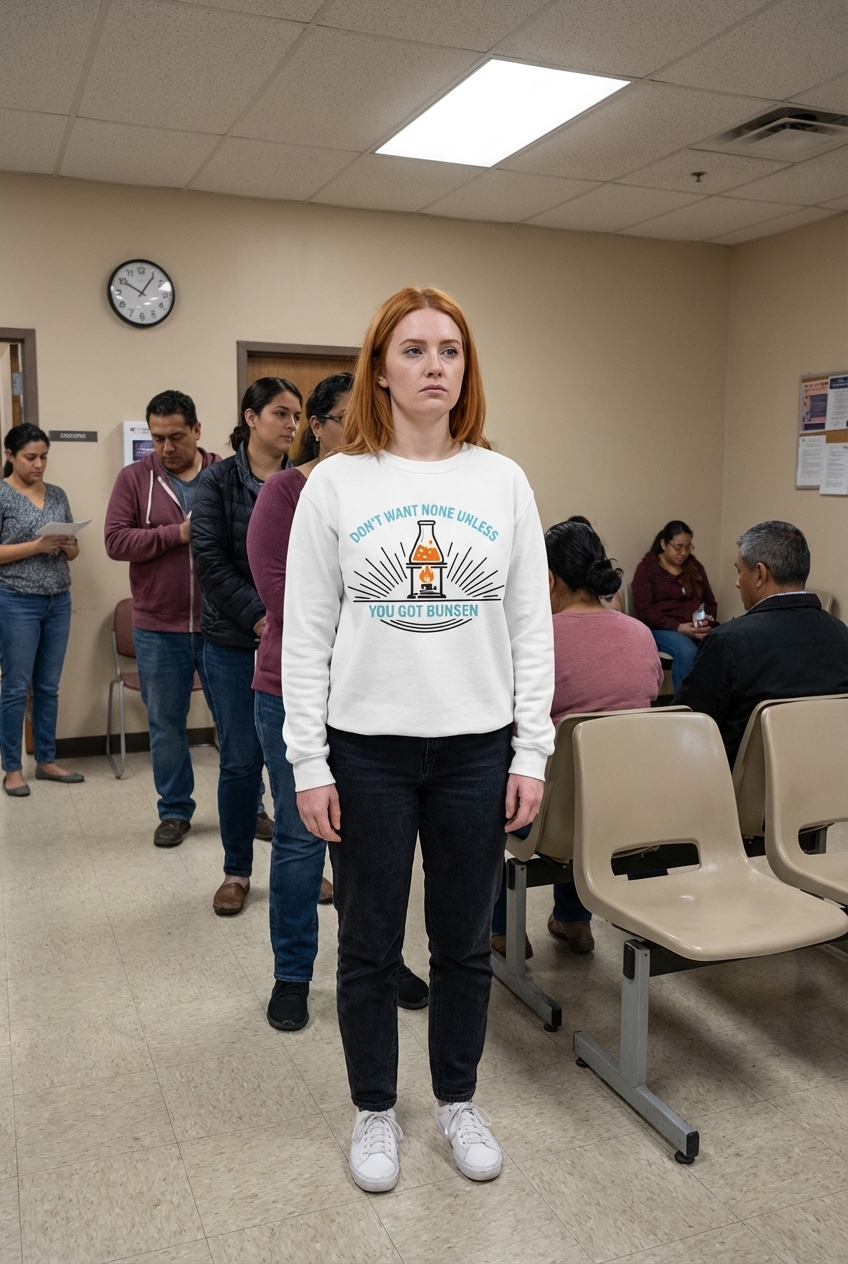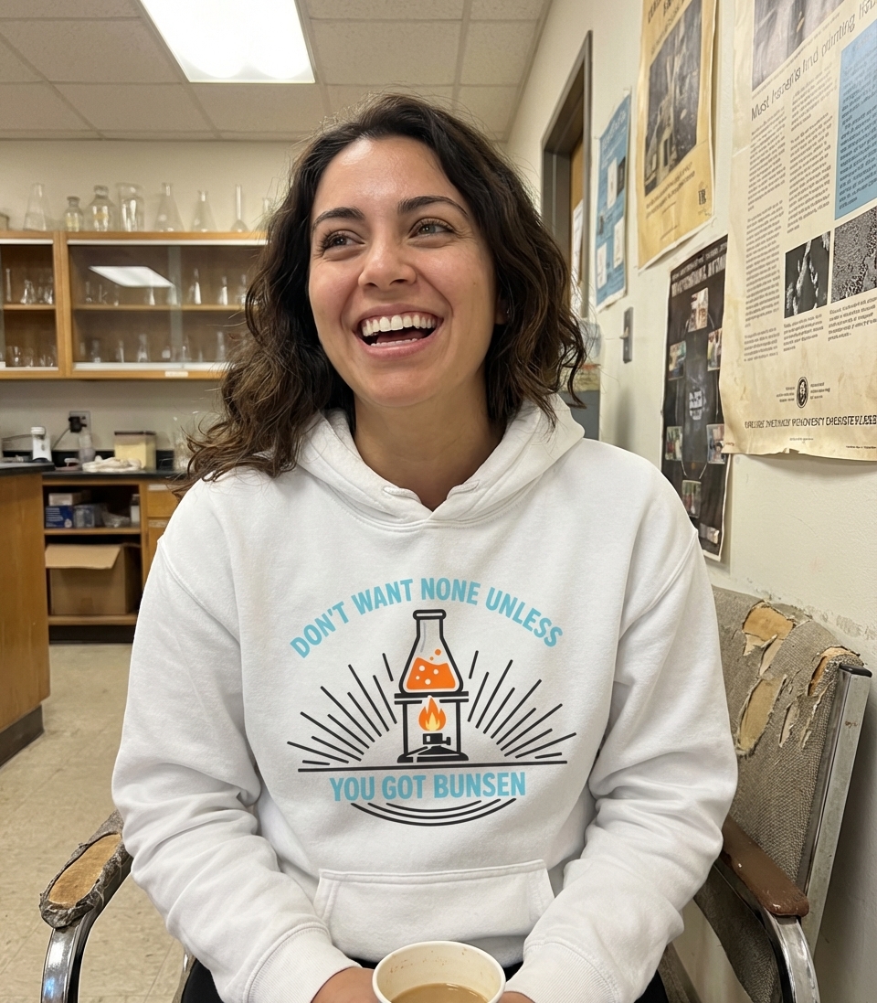 The 'Don't Want Bunsen' phrase captures the lifestyle of witty science enthusiasts who love lab work, clever wordplay, and a good laugh.