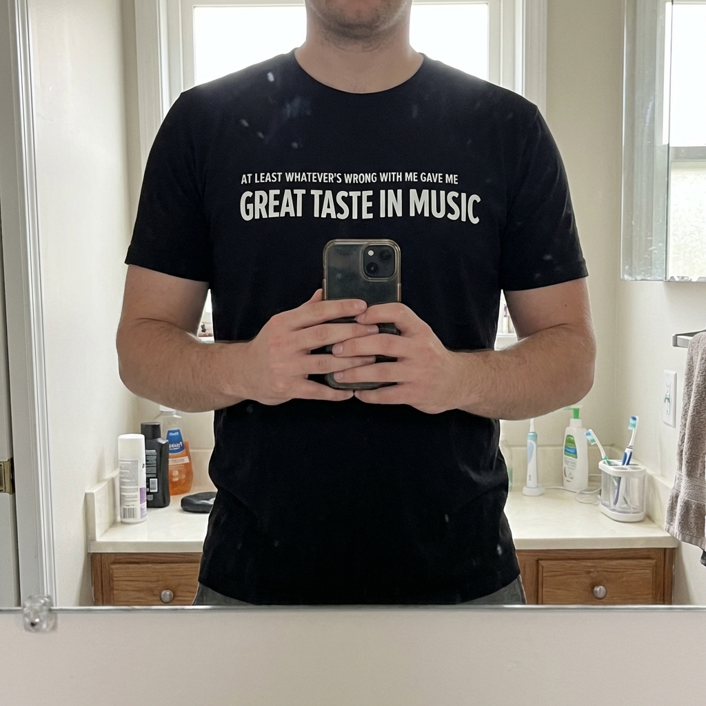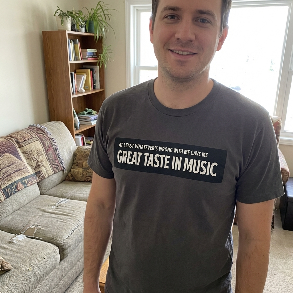 Okay, just got my "Great Taste In Music" tee and it fits awesome, super soft material. The design is actually way cooler in person, understated but really makes a statement without being loud. Definitely my new go-to for casual days.