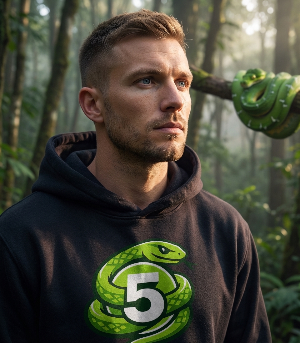 The combination of the snake and the number five can carry various meanings, from representing a favorite sports jersey number or a significant personal milestone. Snakes often symbolize transformation, healing, or protection in many cultures. This design offers a versatile interpretation for the wearer.