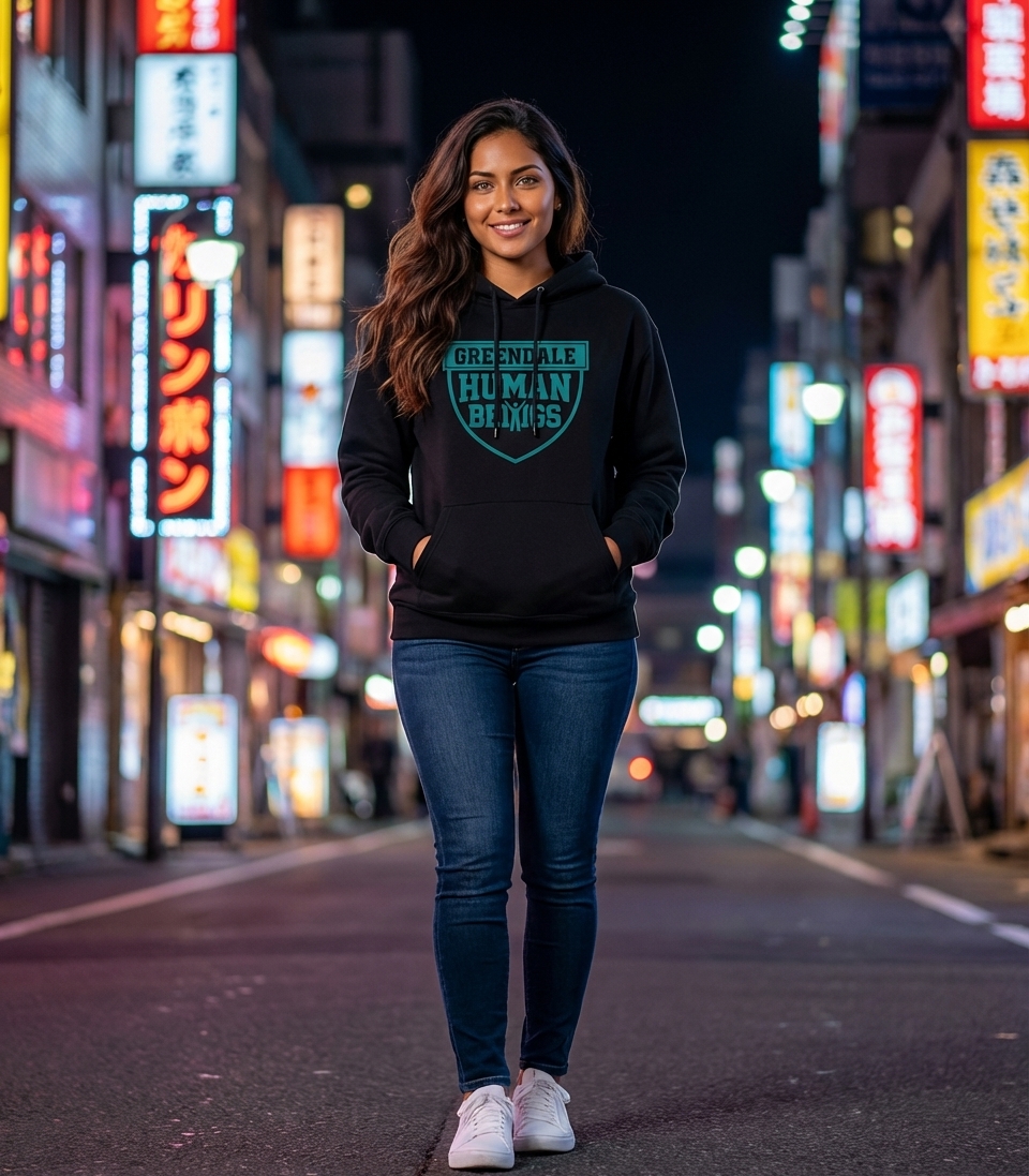 Yes! Check the style selector above to see all available options including hoodies and sweatshirts for the Greendale Human Beings Shield graphic.