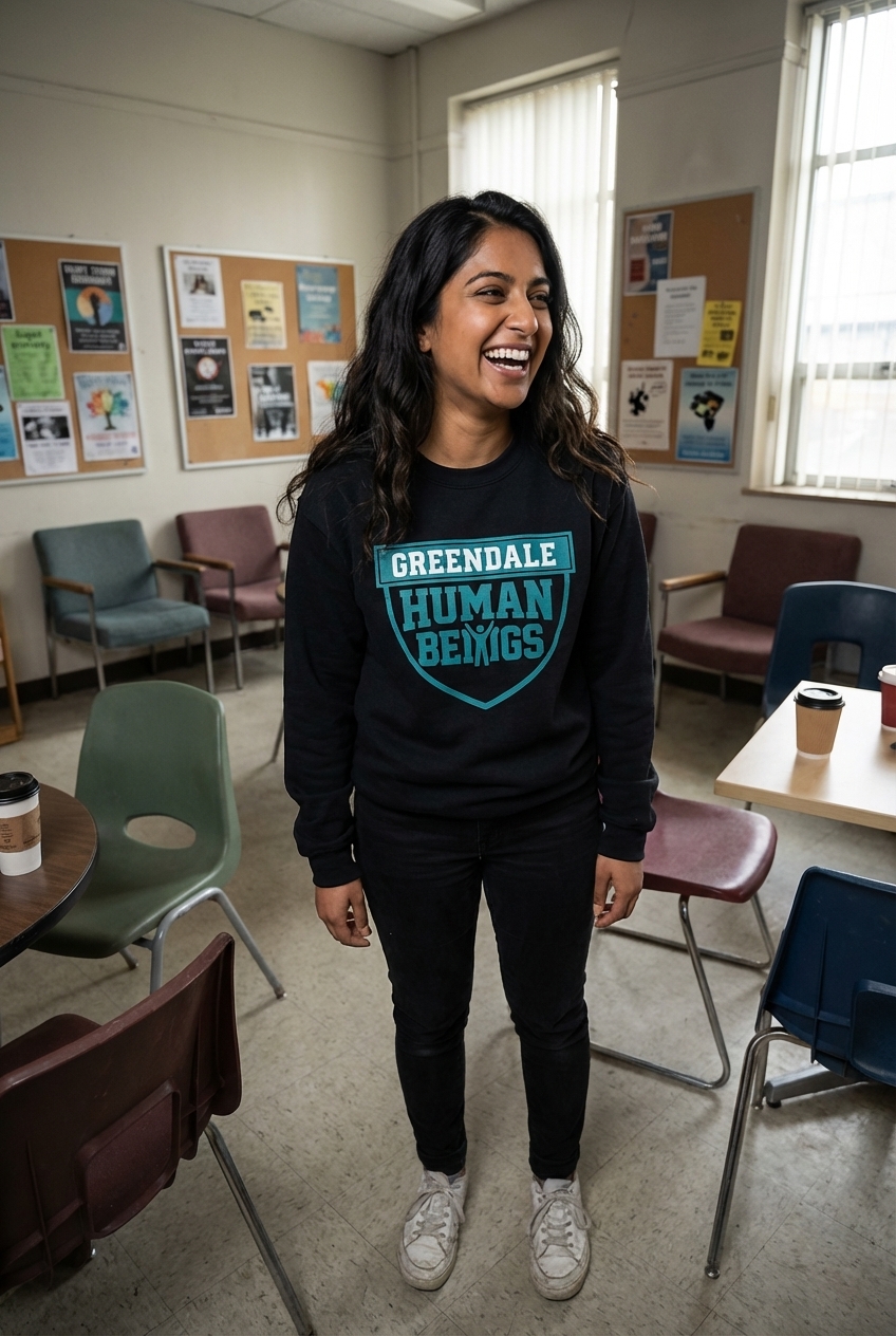 The phrase "Greendale Human Beings" is a running gag from "Community," chosen to be inclusive and inoffensive, yet resulting in a wonderfully absurd and ironically bland team identity. It celebrates the spirit of an underdog community college and its diverse student body. It's a nod to embracing the ordinary in an extraordinary way.