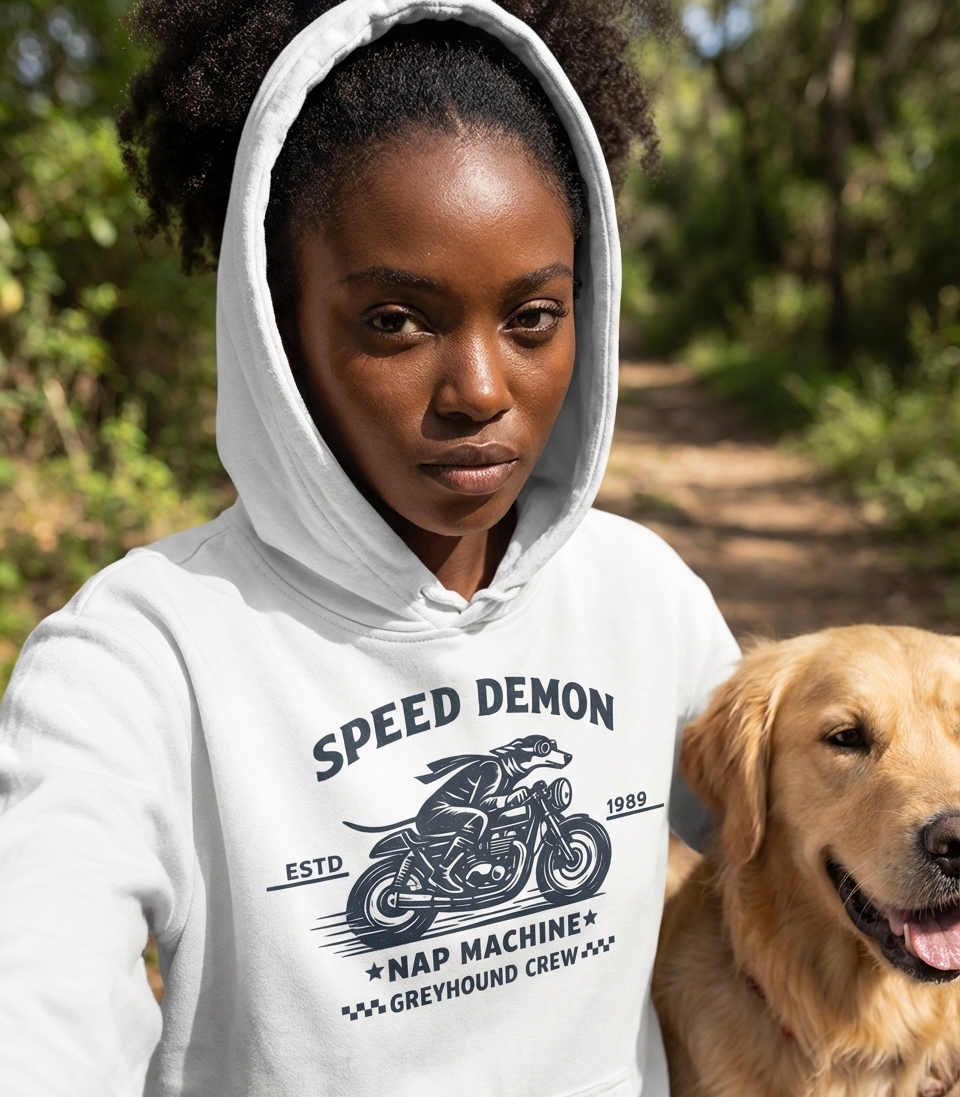 "Speed Demon" playfully refers to the greyhound's incredible running speed, while "Nap Machine" humorously acknowledges their equally impressive talent for napping. It's an affectionate nod to the breed's dual nature.