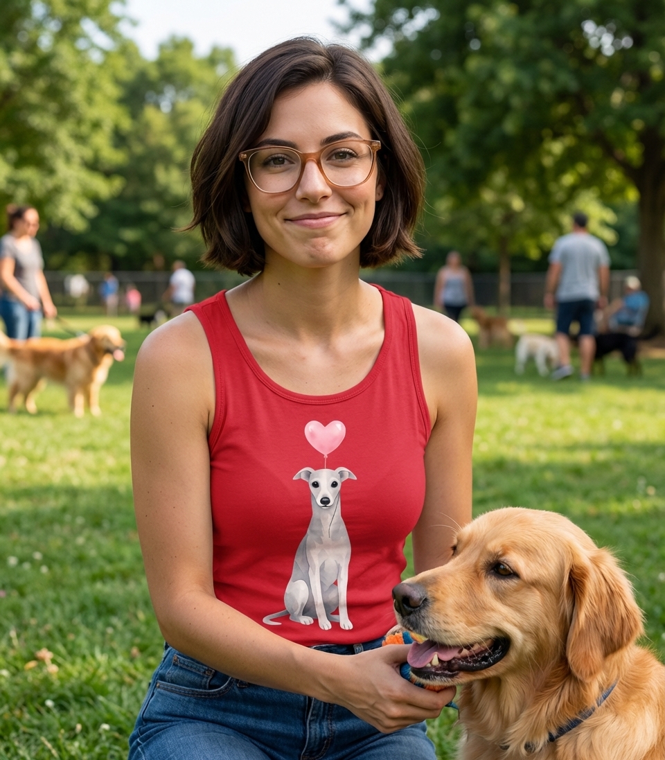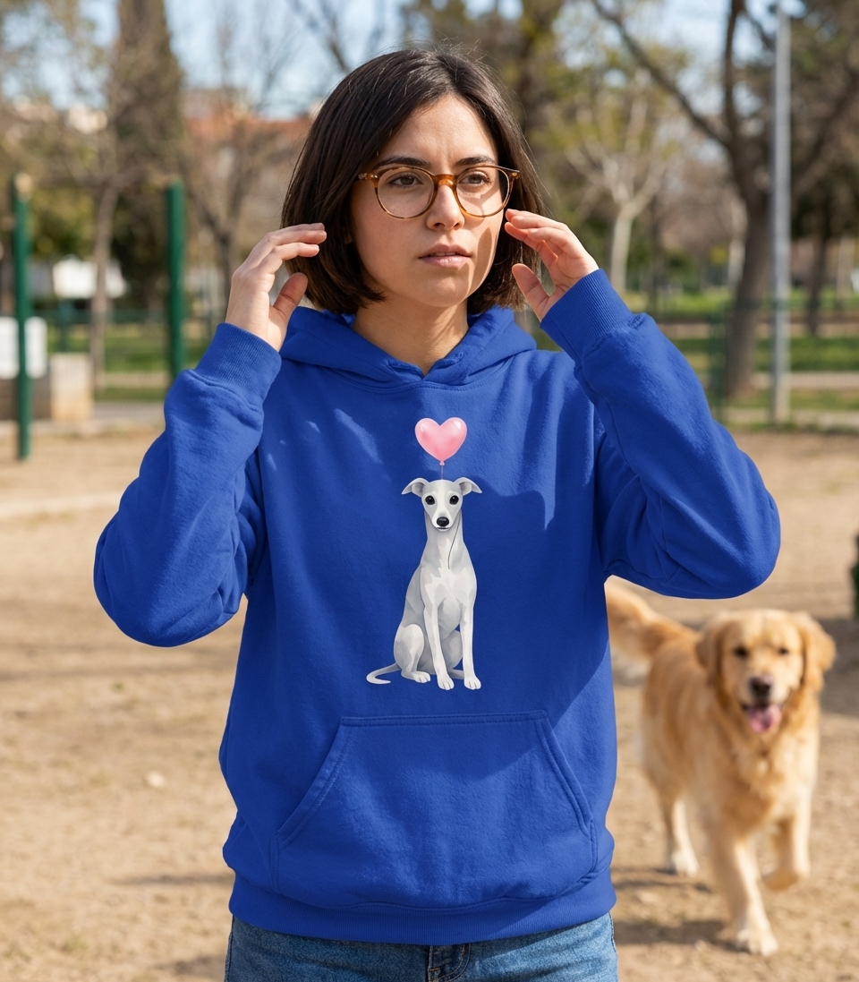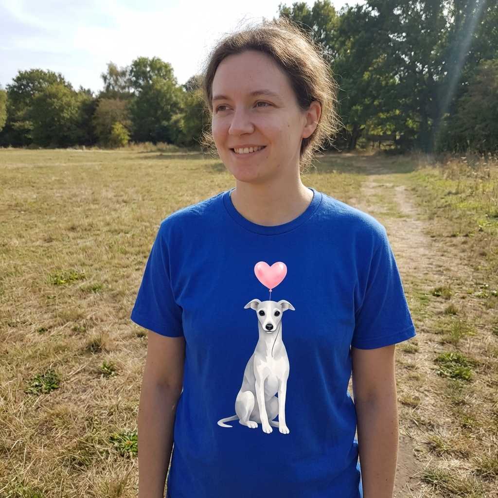 The design itself conveys a message of love and companionship for dogs, particularly for owners of sighthounds or those who appreciate their unique beauty. The heart balloon symbolizes affection and the joy pets bring to our lives.
