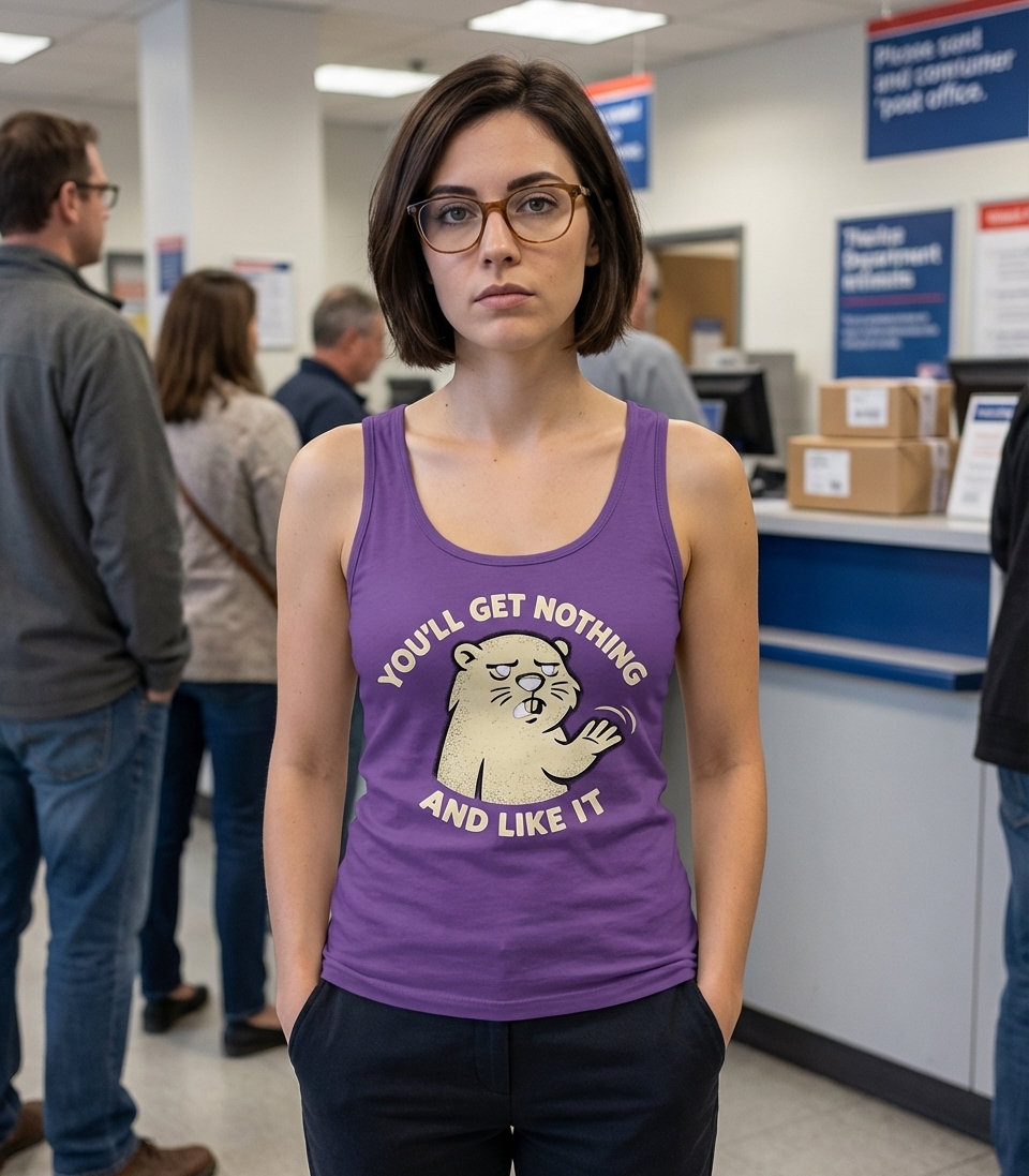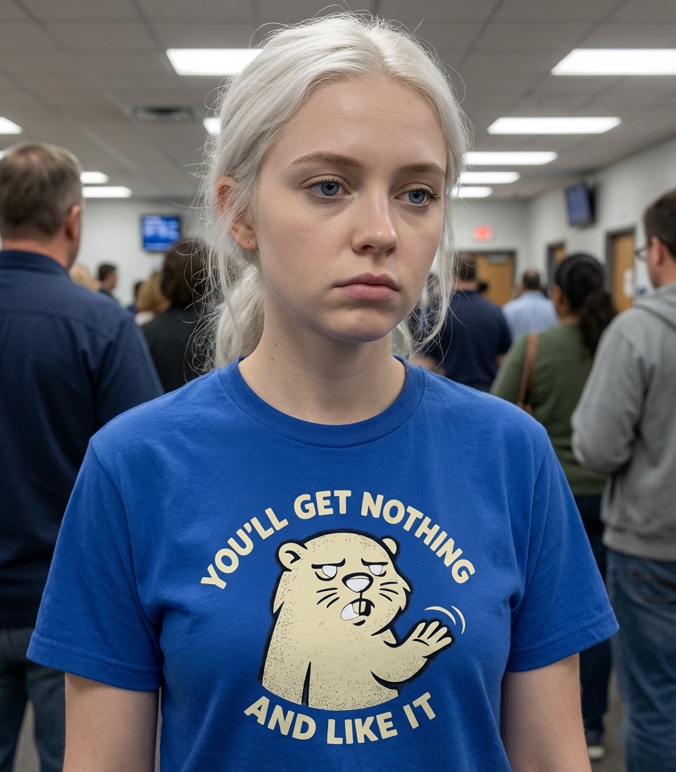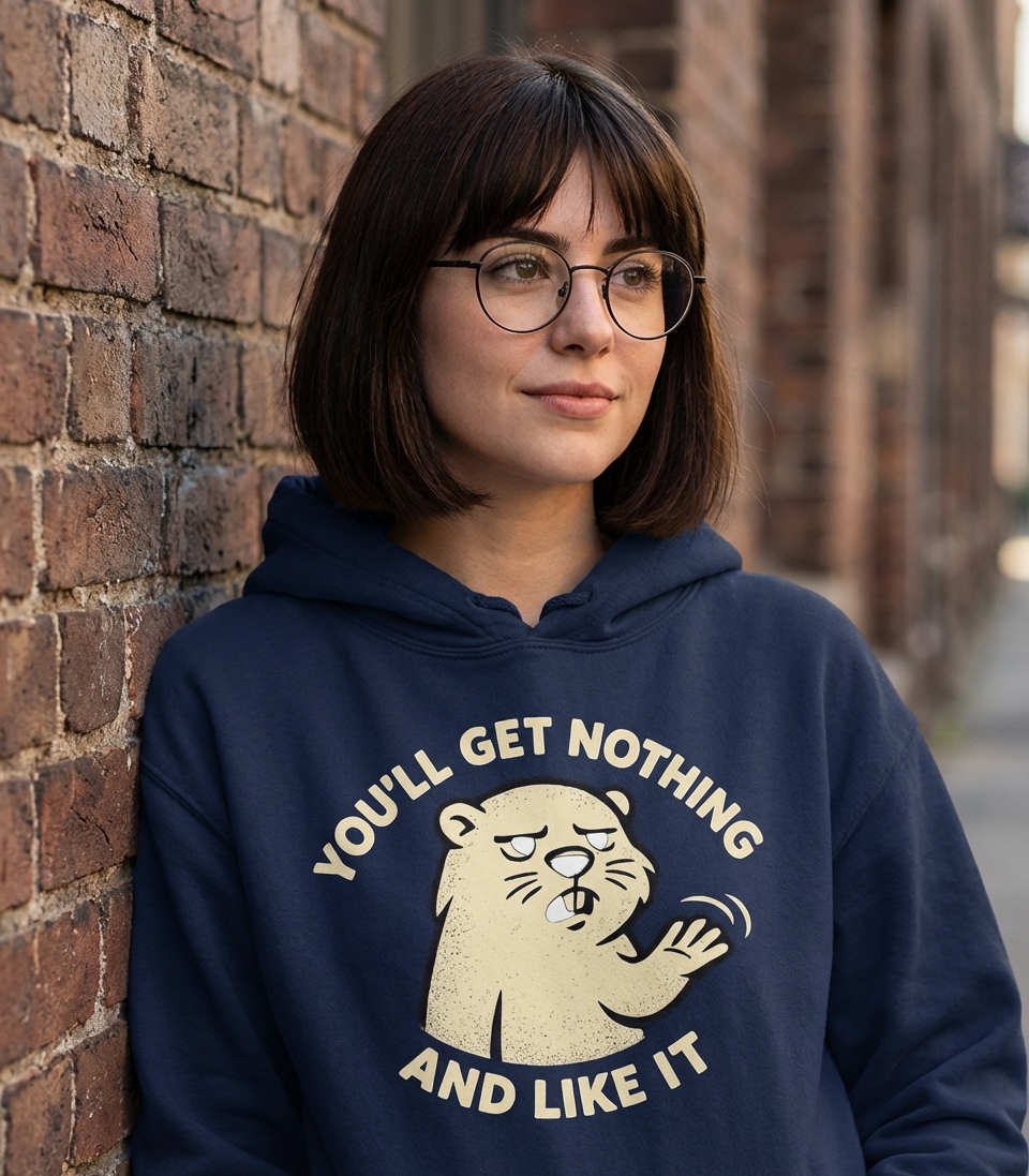 This design features a grumpy groundhog, an endearing cartoon rodent with a distinctly unimpressed expression. Its raised paw reinforces the straightforward message, conveying a sense of finality and dry wit.