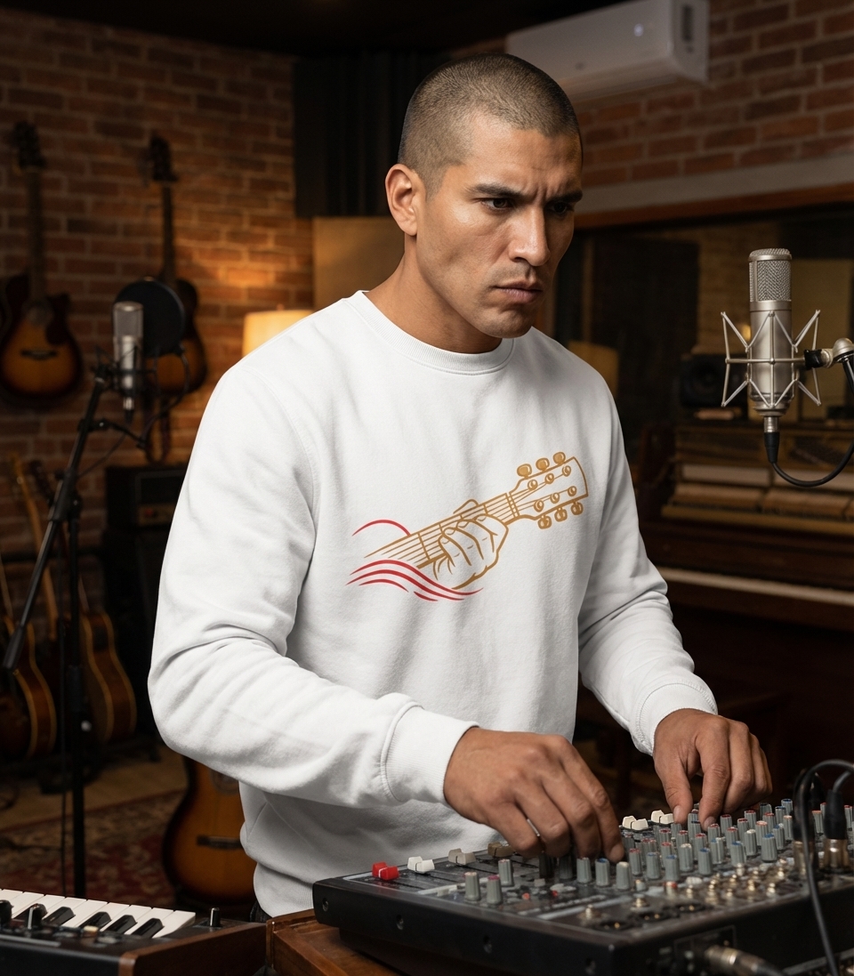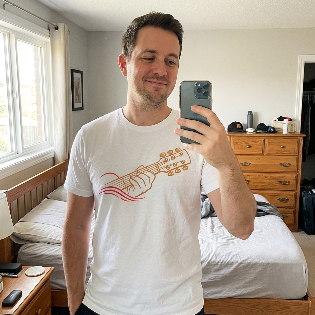 Okay, just got my 'Guitar Hand Music' tee and it's honestly way better than I expected. The fabric is so comfy, and the abstract design is really sharp – love how it looks, not too in-your-face but still cool.