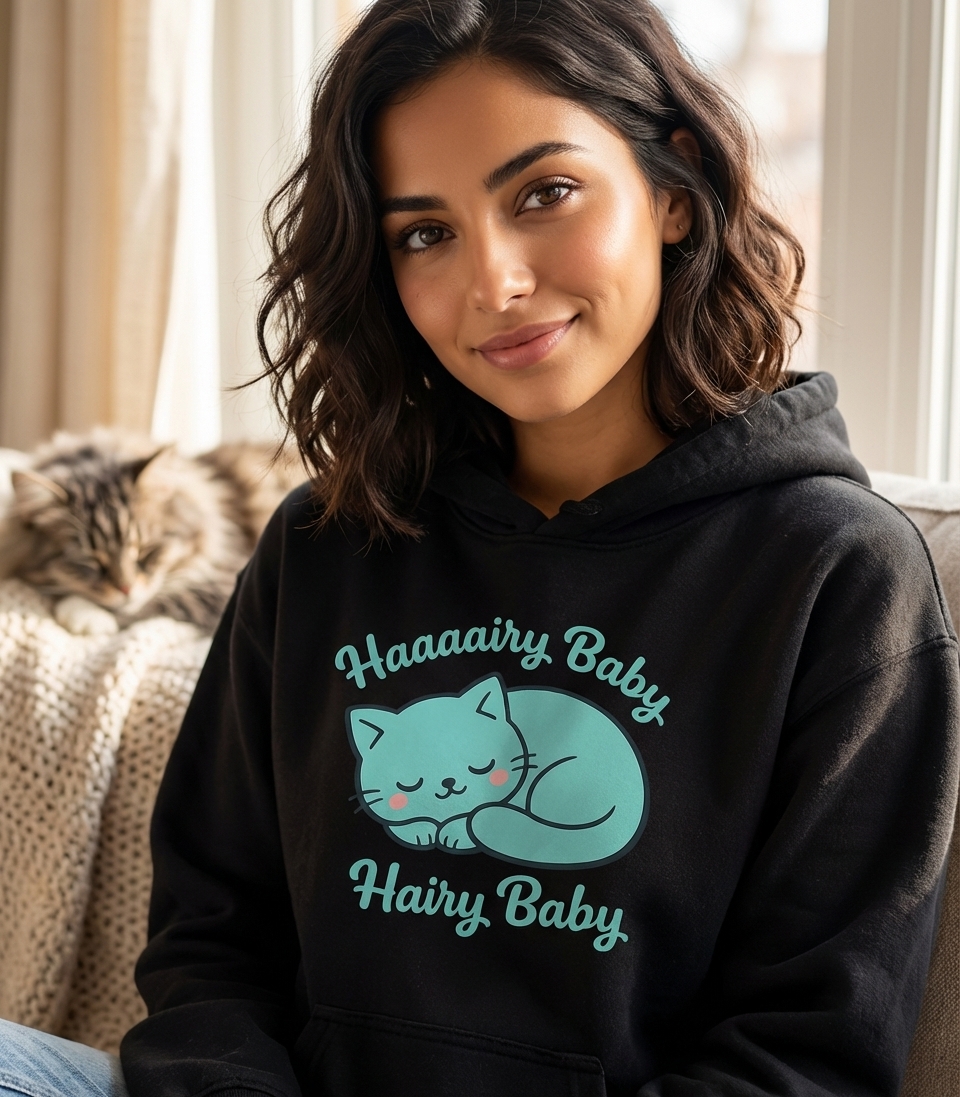 The playful phrase "Hairy Baby" (with its extended "Haaaaairy") is a loving nickname often given to beloved pets, especially cats. It celebrates their cuddly, furry nature and the special bond shared between pets and their human companions.