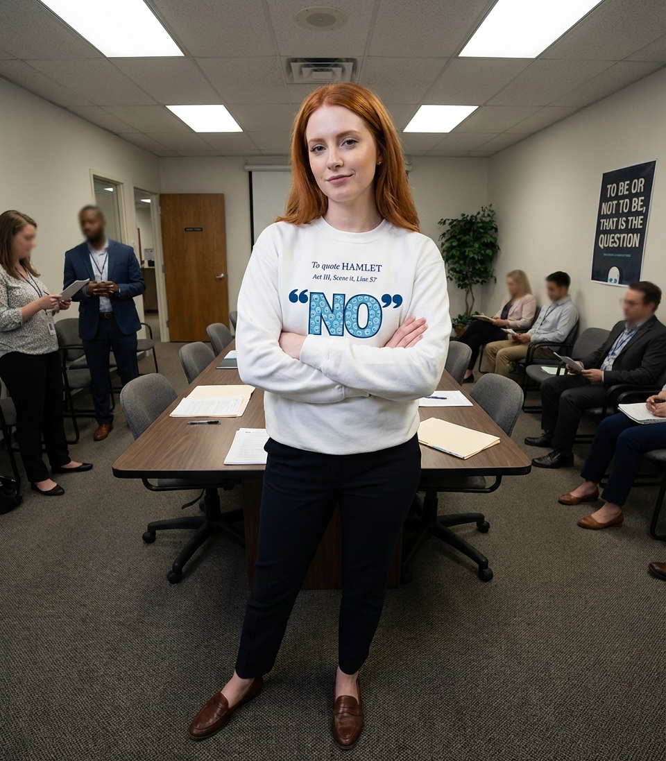 The 'Hamlet Says No' phrase captures the lifestyle of sarcastic literature lovers who enjoy clever wordplay, theatrical humor, and historical references.