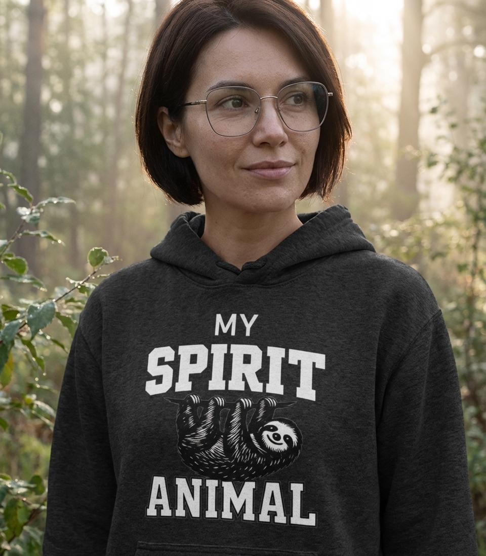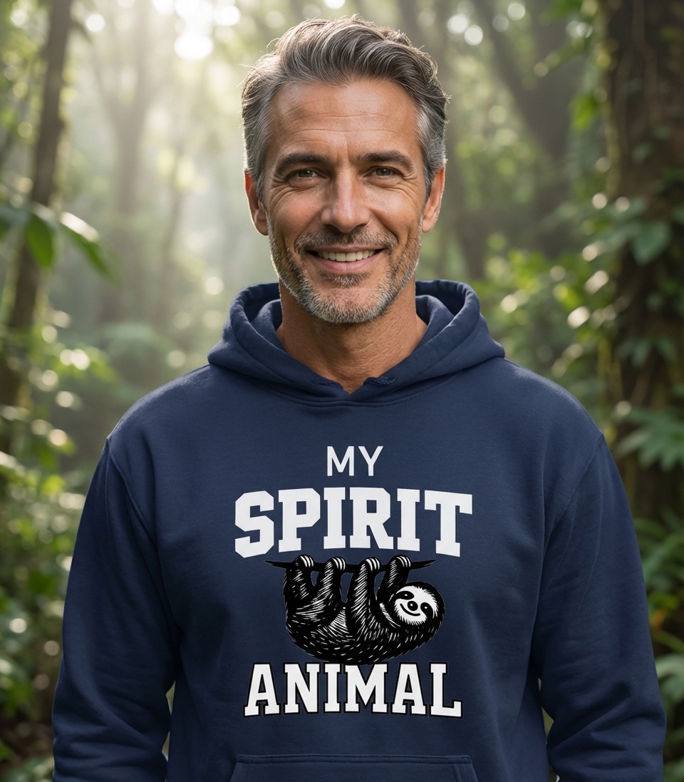 The prominent word "ANIMAL" serves as a direct and simple declaration of the design's focus on the natural world and its inhabitants. Paired with the iconic sloth, it celebrates the diversity and charm of wildlife. It's a straightforward nod to those who identify strongly with animals or simply appreciate their beauty and unique characteristics.