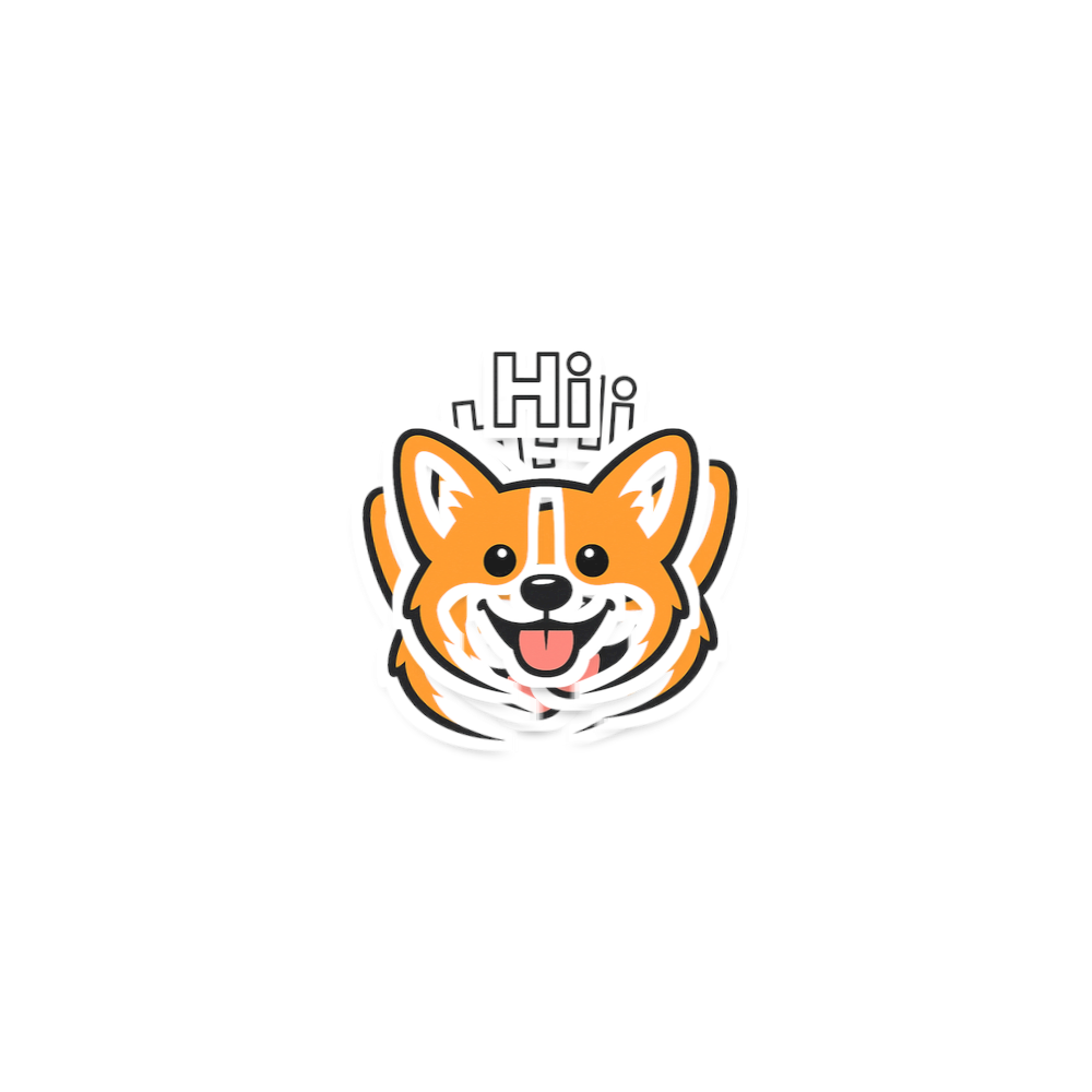 This charming graphic features a delightful cartoon Corgi, complete with its signature pointy ears, big smile, and a cute tongue sticking out. The playful "Hi" above its head adds a welcoming touch, making it a perfect conversation starter.